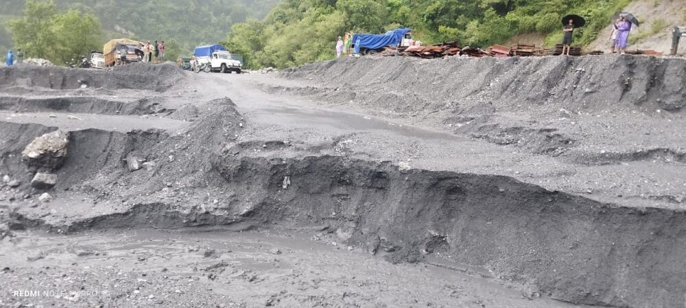 धादिङ गल्छीको जरेखेतमा पहिरो जाँदा पृथ्वीराजमार्ग अवरुद्ध