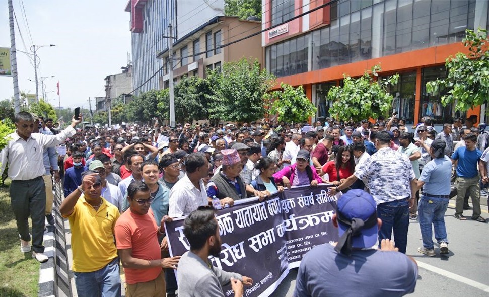 यातायात व्यवसायीको माइतीघर–बानेश्वर खण्डमा प्रदर्शन