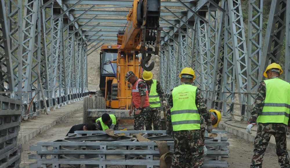 पानीको सतह बढेपछि सुनकोशी नदीमा जडान गरिएको ‘बेलिब्रिज’ झिकियो