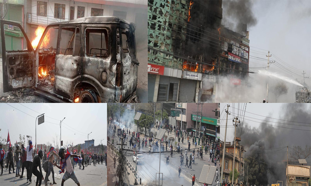 विमानस्थल अगाडि राजावादी समूहले गरे आगजनी