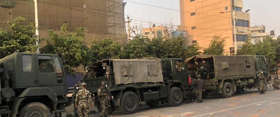 तीनकुने क्षेत्रमा कर्फ्यू आदेश पालना गराउन नेपाली सेना खटियो