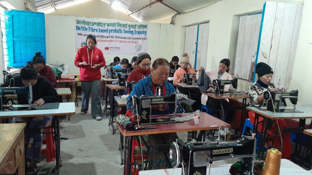 ताप्लेजुङका महिला उद्यमी अल्लोको कपडाबाट आकर्षक सामग्री बनाउँदै