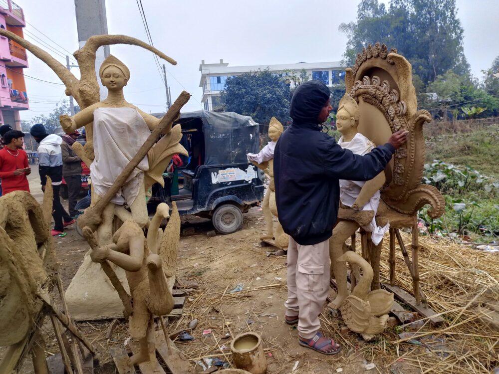 सरस्वती पूजाका लागि धमाधम मूर्ति बनाउँदै