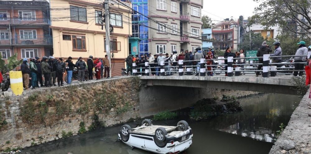 काठमाडौं । काठमाडौंको धोबीखोलामा आइतबार बिहान काठमाडौं महानगरपालिका–२१ स्थित मदन भण्डारी कलेजनजिक बिएए ८७१४ नम्बरको कार[...]