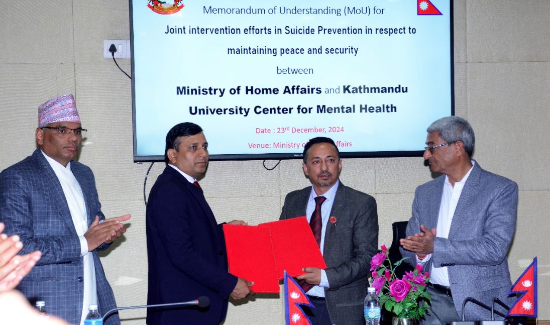 काठमाडौं । गृह मन्त्रालय र काठमाडौं विश्वविद्यालय (केयू)को मानसिक स्वास्थ्य विभागबीच मानसिक स्वास्थ्य अध्ययन–अनुसन्धानका लागि समझदारीपत्रमा[...]