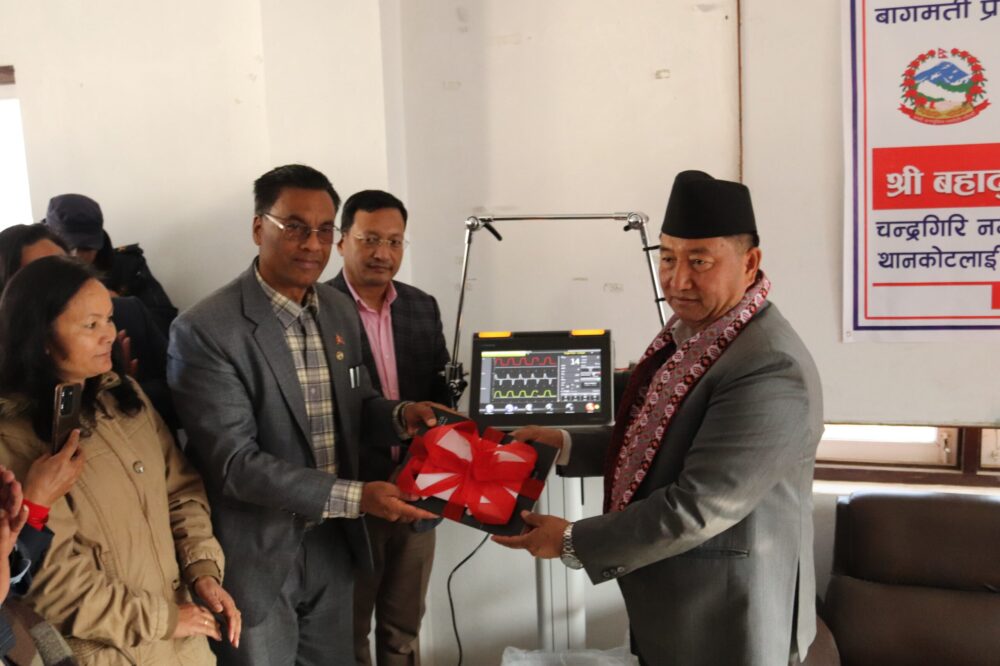 मुख्यमन्त्री लामाद्वारा चन्द्रागिरि नगर अस्पताललाई ‘भेन्टिलेटर’ हस्तान्तरण