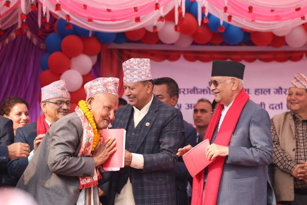 प्रधानमन्त्री ओलीद्वारा महारानीझोडामा जग्गाधनी दर्ता प्रमाणपुर्जा वितरण