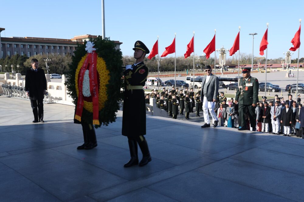 प्रधानमन्त्री ओलीद्वारा चिनियाँ जनक्रान्तिका सहिदका स्मारकमा पुष्पहार अर्पण
