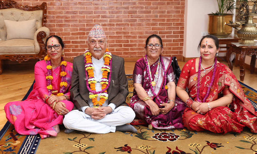 प्रधानमन्त्री ओलीद्वारा बहिनीहरुबाट भाइटीका ग्रहण