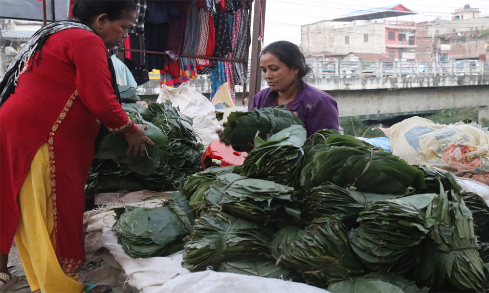 सालको पात बेचेर खर्च जुटाउँदै महिला