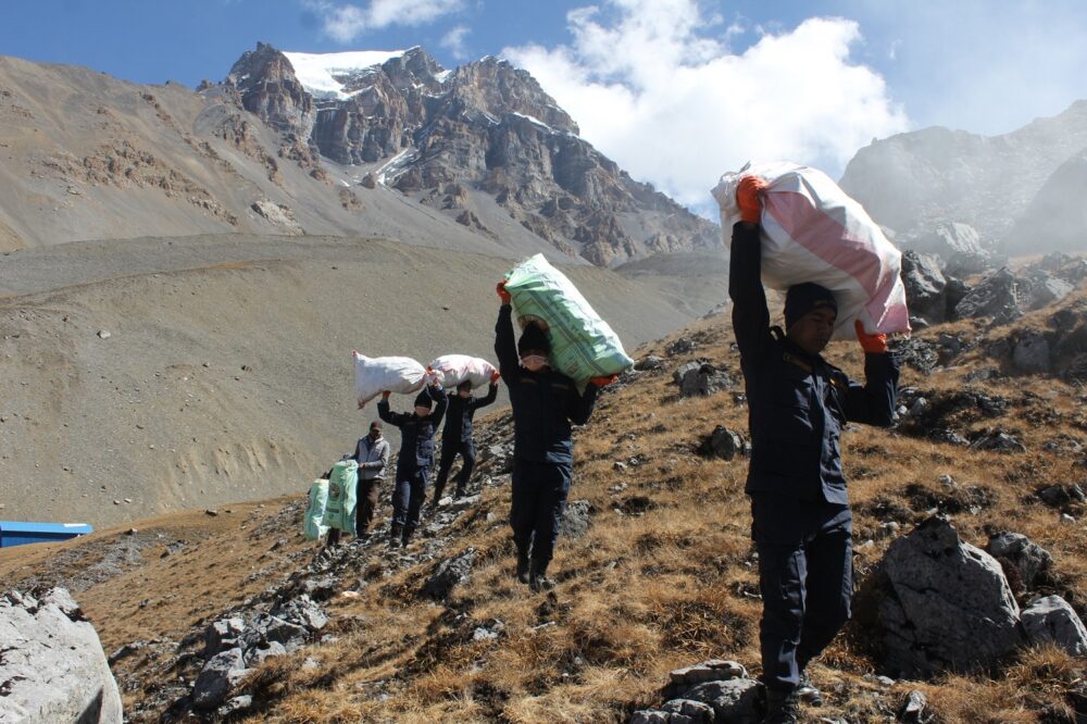 ५ हजार ४ सय मिटर उचाइको थोराङमा सरसफाइ