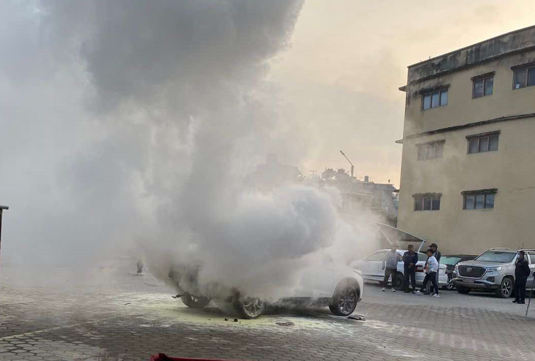 सीतापाइलामा पार्किङ गरेर राखेको कारमा आगलागी