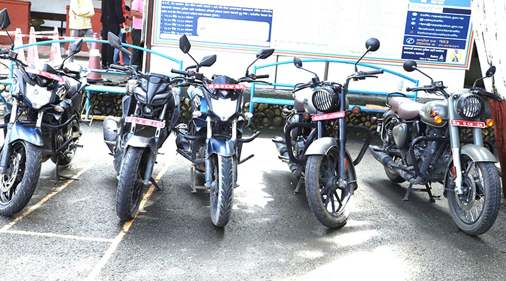 एउटै नम्बर प्लेटका ५ वटा मोटरसाइकलसहित दुई पक्राउ
