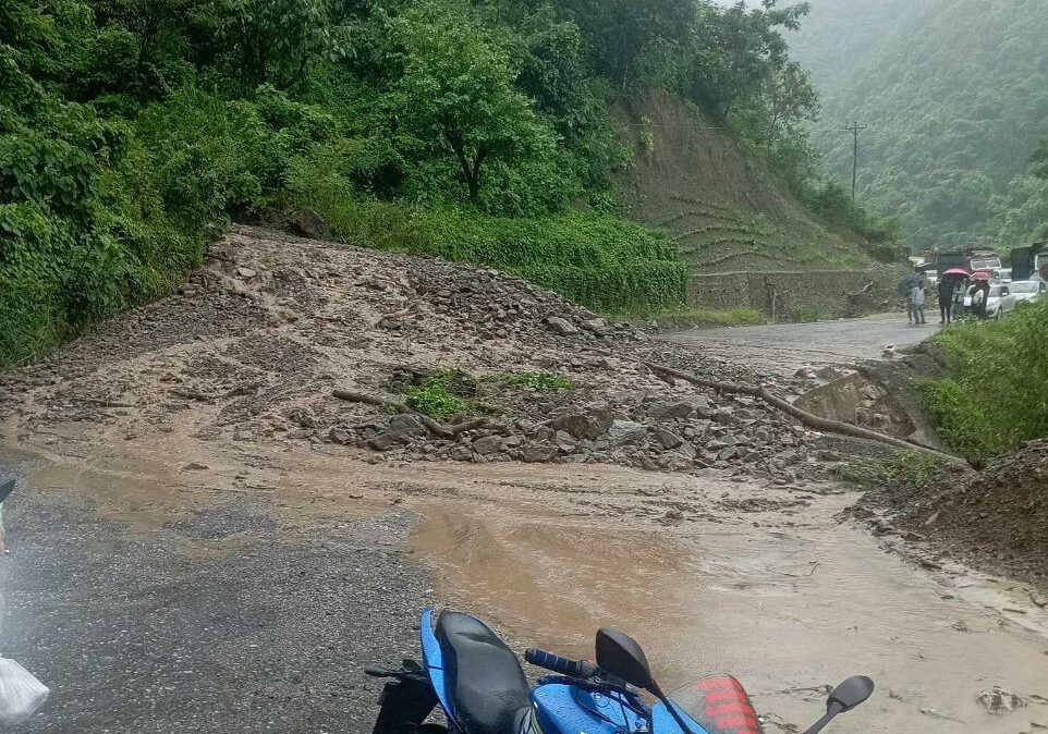 इच्छाकामनाको घोप्टेभिरमा लेदोसहितको पहिरो खसेर पृथ्वी राजमार्ग अवरुद्ध