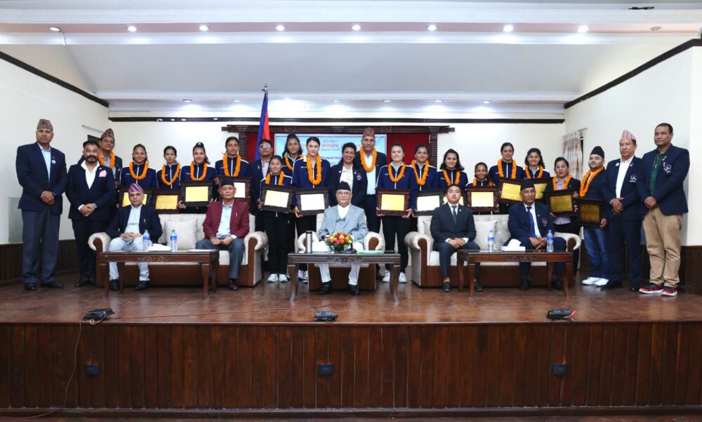 काठमाडौं । प्रधानमन्त्री केपी शर्मा ओलीले ‘काभा वुमन्स भलिबल नेसन्स् लिग, २०२४’ मा सहभागी राष्ट्रिय महिला[...]