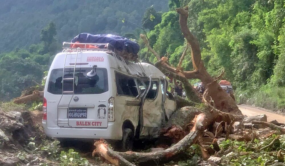 धादिङको गजुरीमा गुडिरहेको माइक्रो बसमाथि रूख ढल्यो, ७ यात्रु घाइते