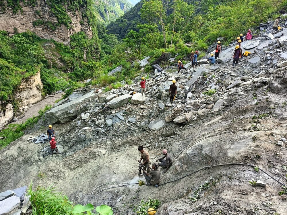 बेनी–जोमसोम सडकः बैसरीको भिरमा पहिरो रोकथाम गर्न ‘रक एङ्करिङ’