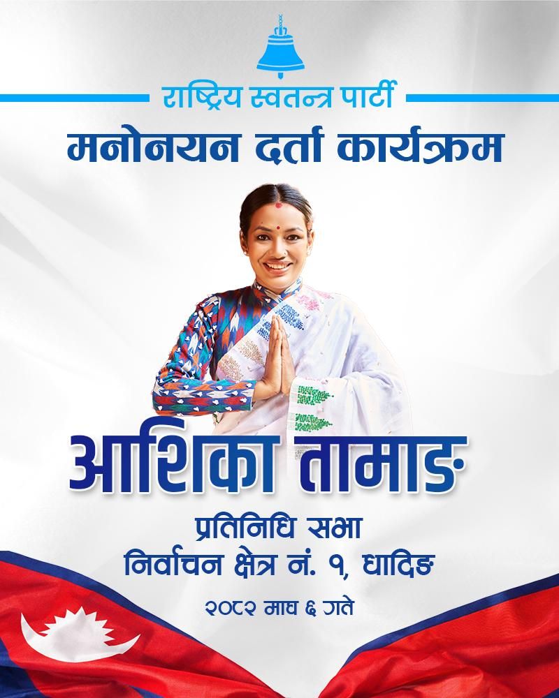 काठमाडौं । राष्ट्रिय स्वतन्त्र पार्टी (रास्वपा) बाट धादिङ जिल्ला क्षेत्र नम्बर १बाट उम्मेदवार बनेकी आशिका तामाङले[...]