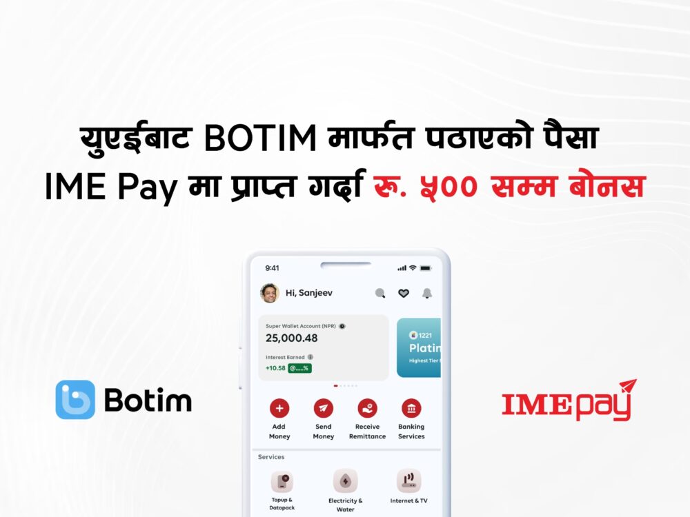 यूएईबाट बोटिममार्फत पठाएको पैसा आइएमई पेमा प्राप्त गर्दा ५०० सम्म बोनस