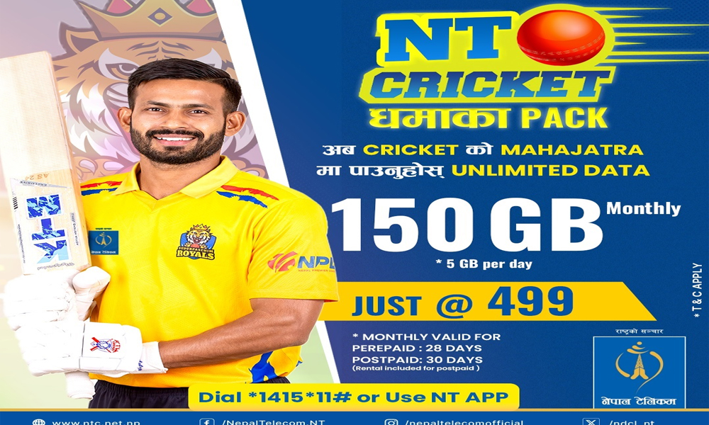 टेलिकमको ‘एनटी क्रिक्रेट धमका प्याक’ सार्वजनिक