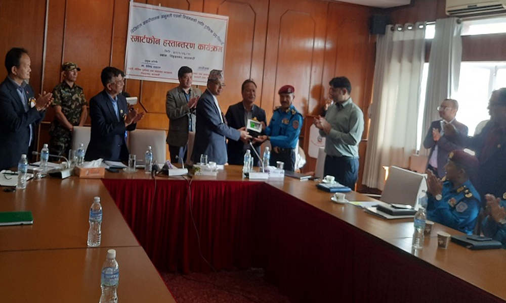 अब ट्राफिक नियम उल्लघन गर्नेलाई डिजिटल चिट, ट्राफिक प्रहरीलाई दिइयो १०३ स्मार्टफोन
