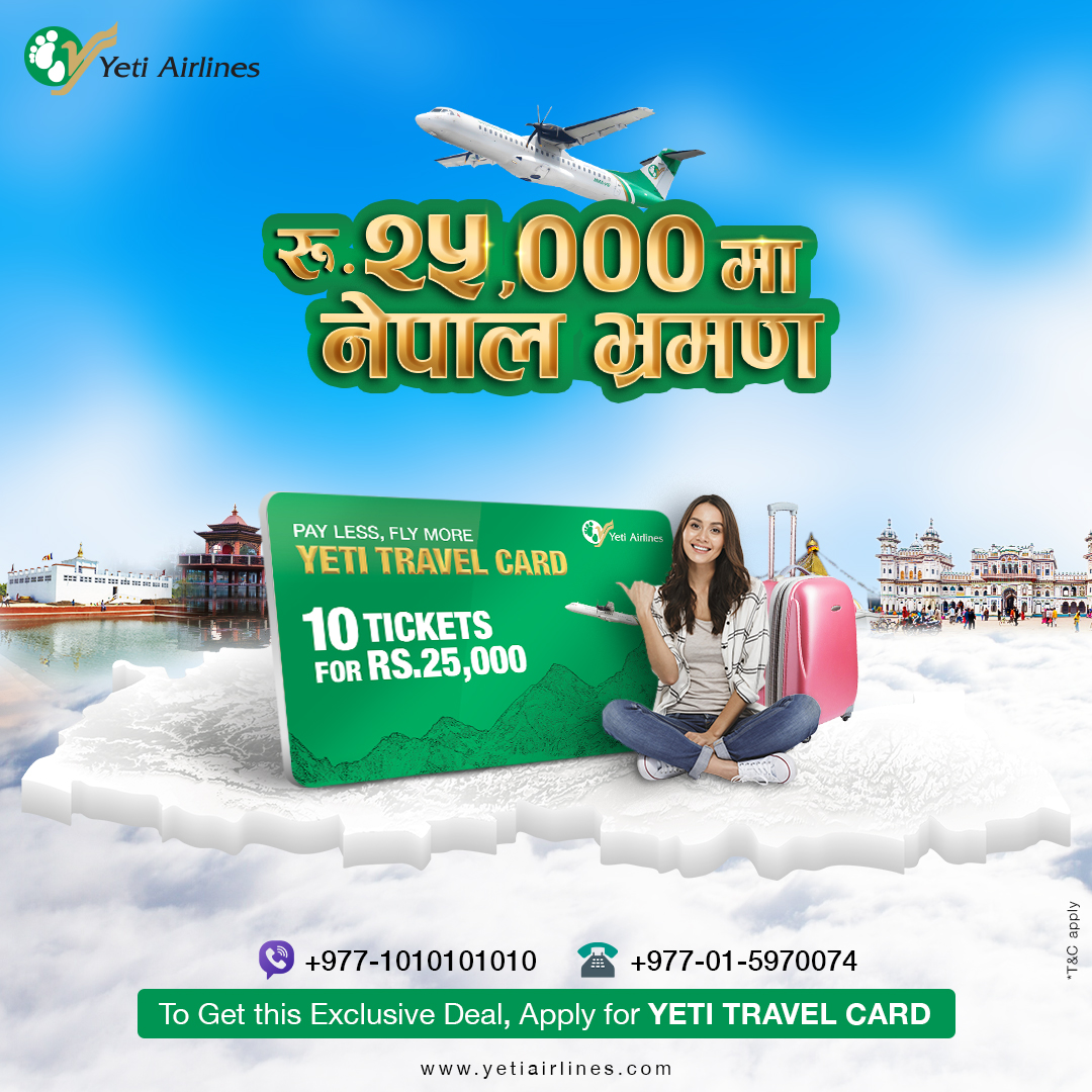 २५ हजारमा यती एयरलाइन्सले १० वटा टिकट दिँदै, ‘यती ट्राभल कार्ड’ लागू