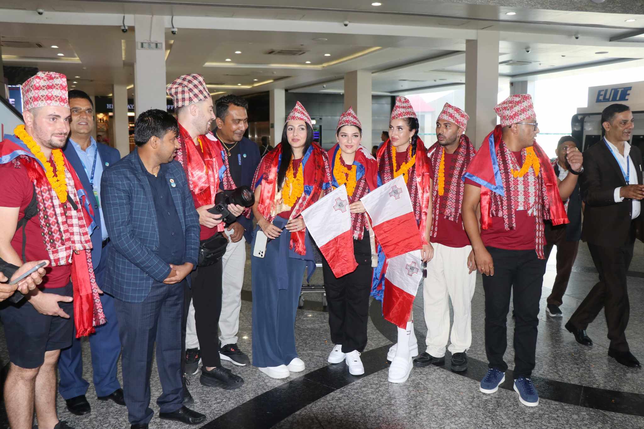 मिस माल्टाको ढाका टोपी र पञ्चेबाजाले भव्य स्वागत