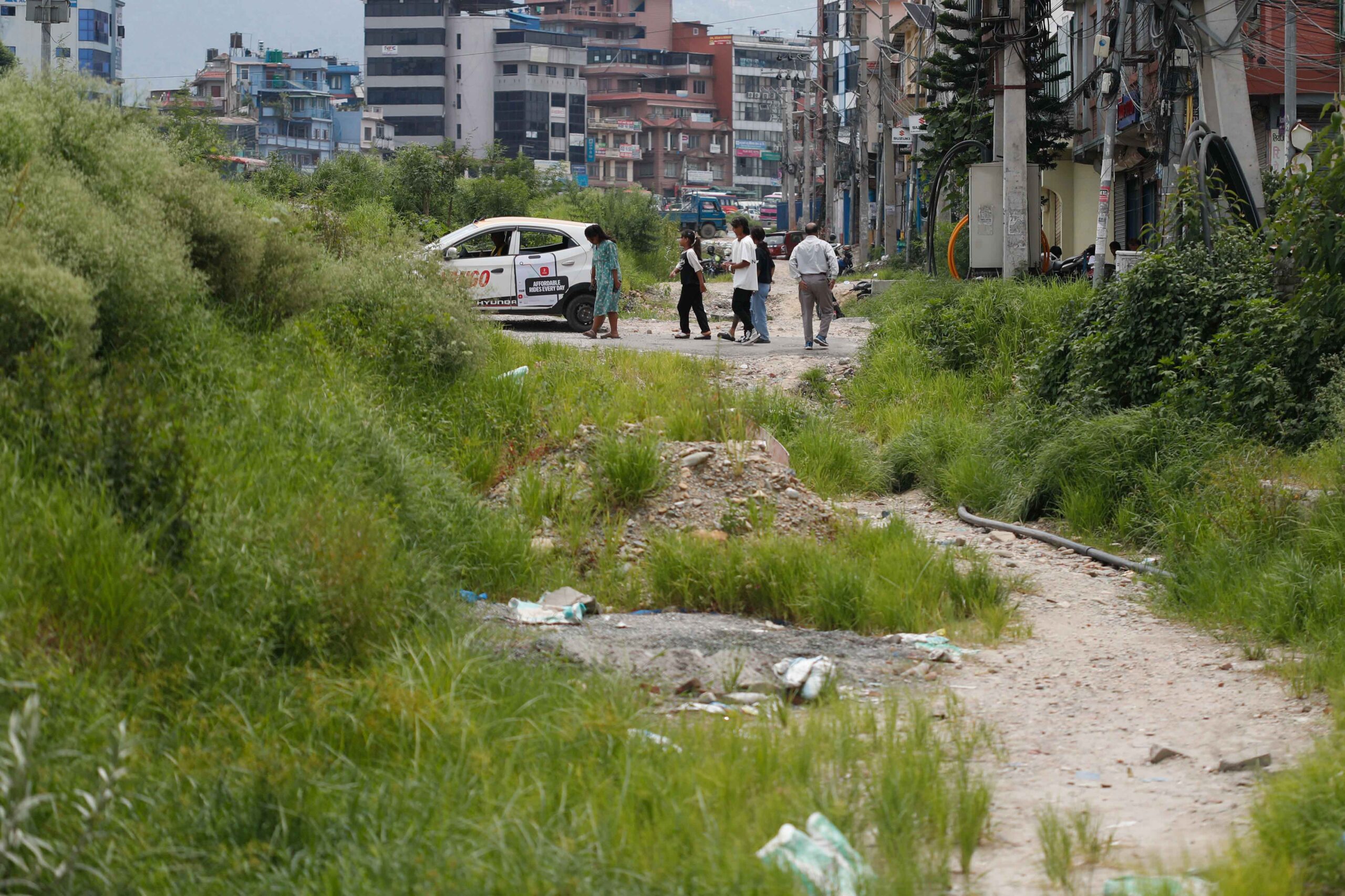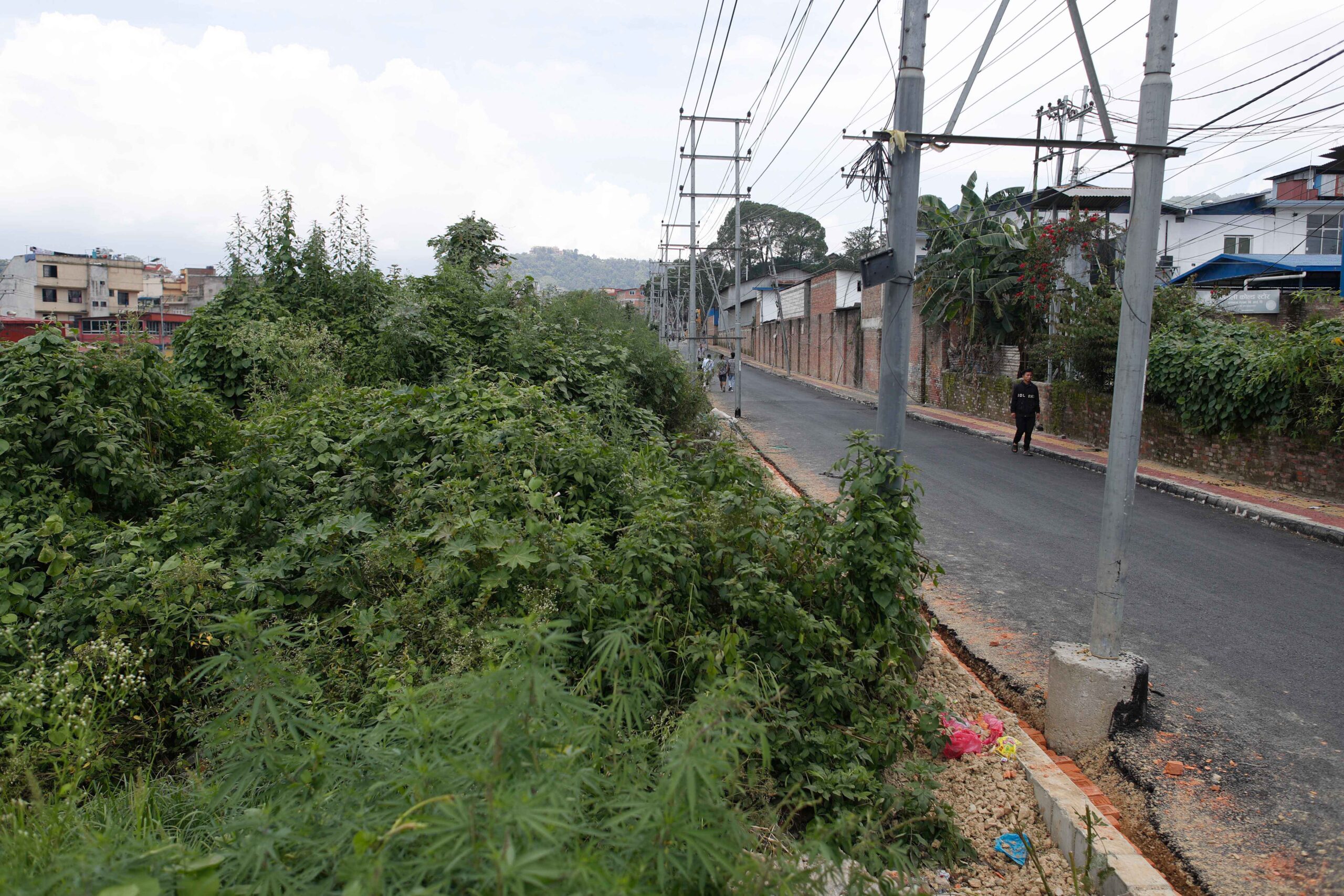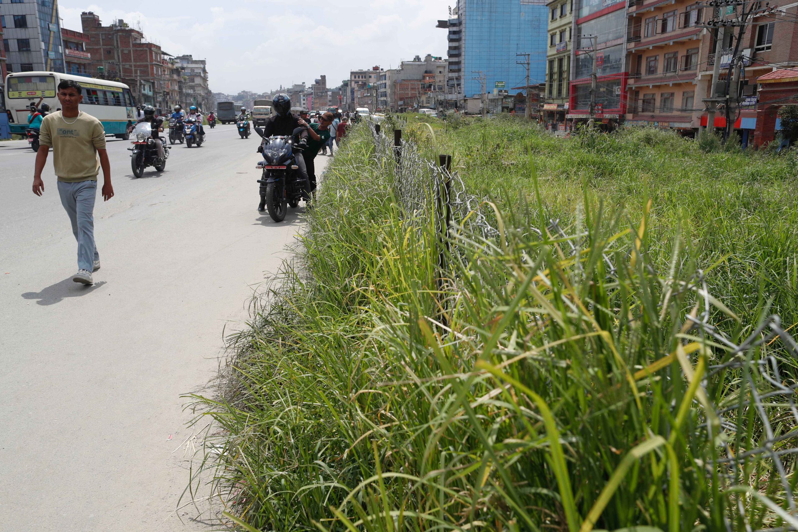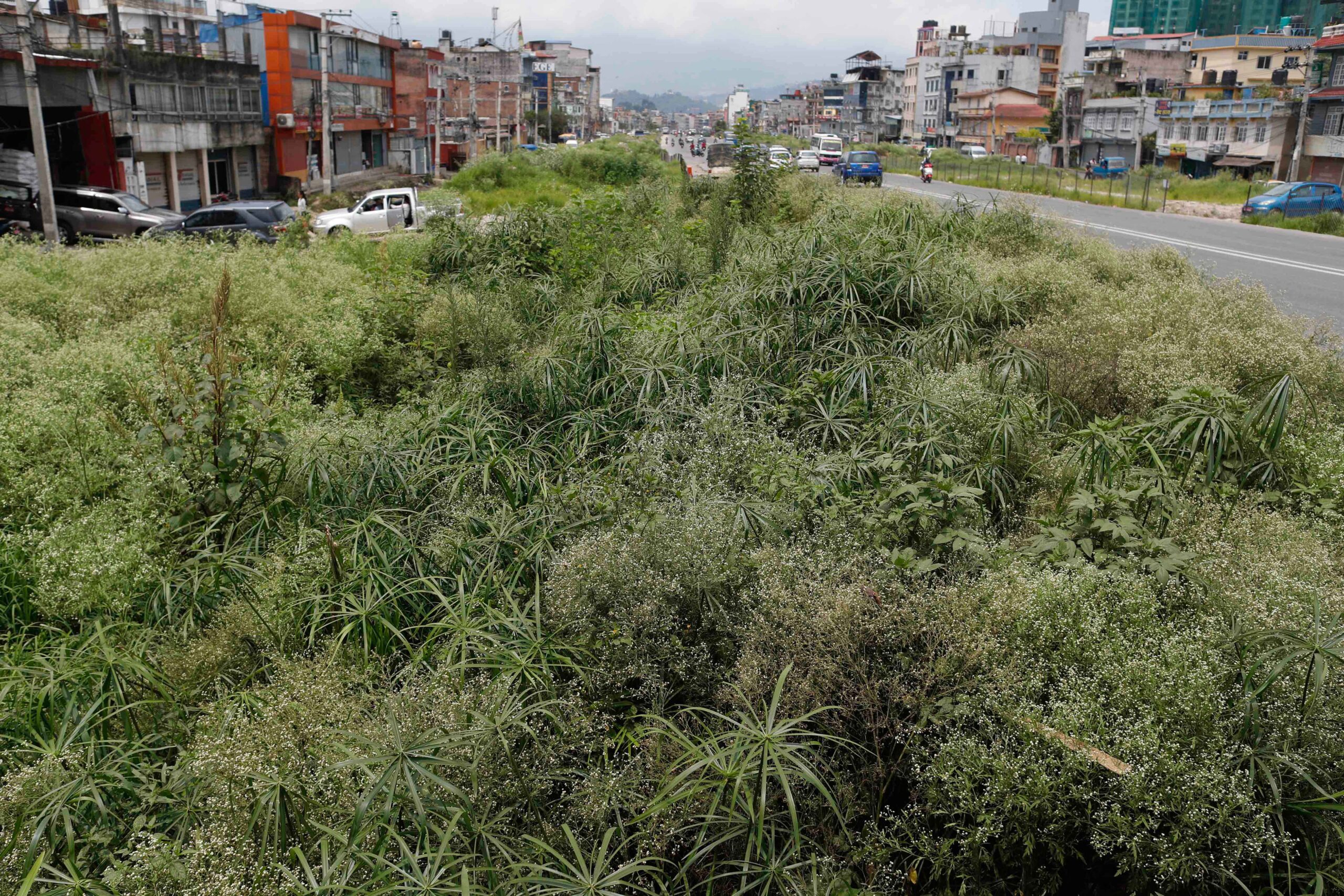 At present, the road from Kalanki to Narayan Gopal Chowk is covered with grass and shrubs on the right side of the road.