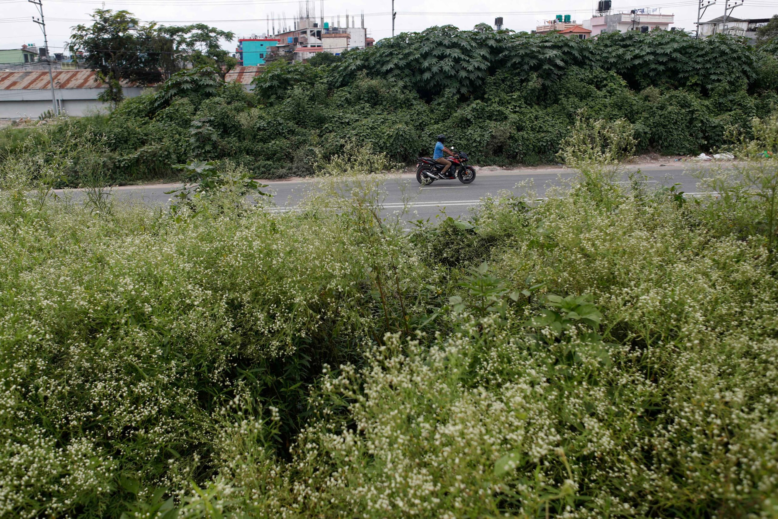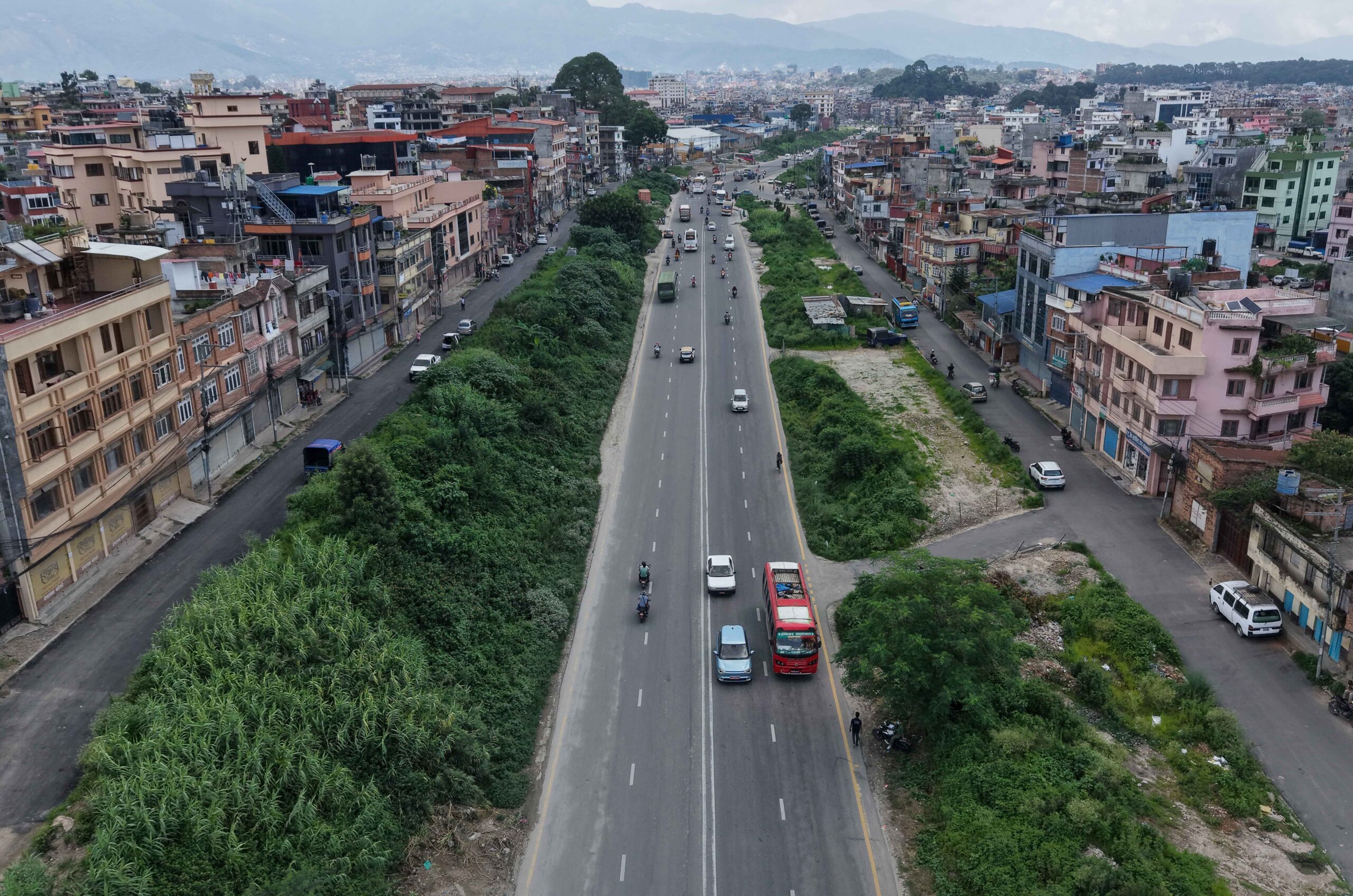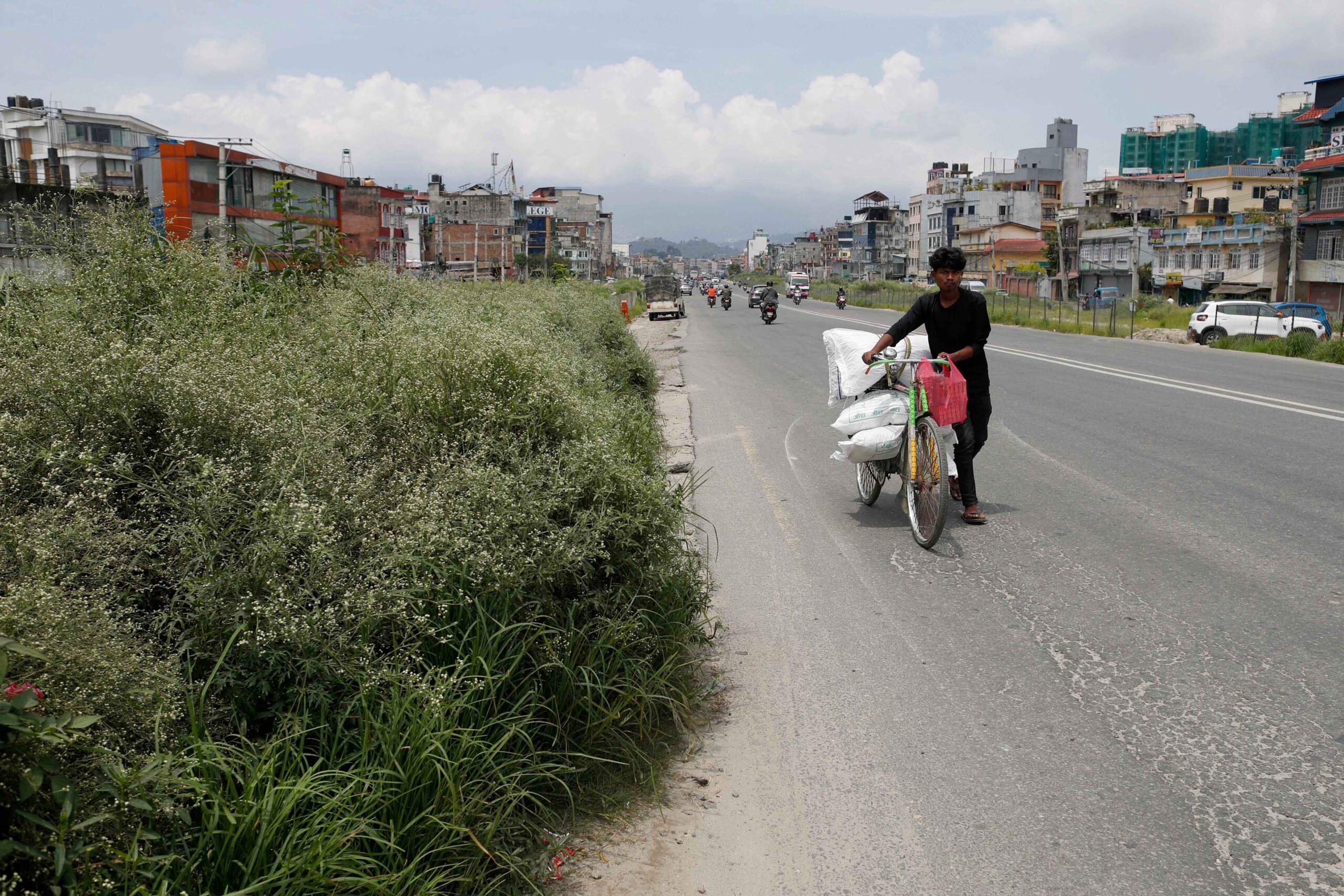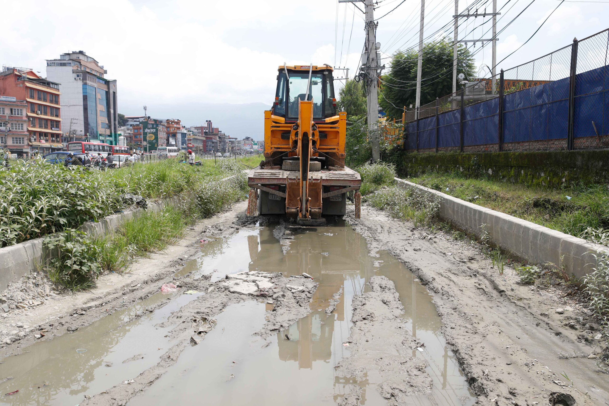 At present, the road from Kalanki to Narayan Gopal Chowk is covered with grass and shrubs on the right side of the road.
