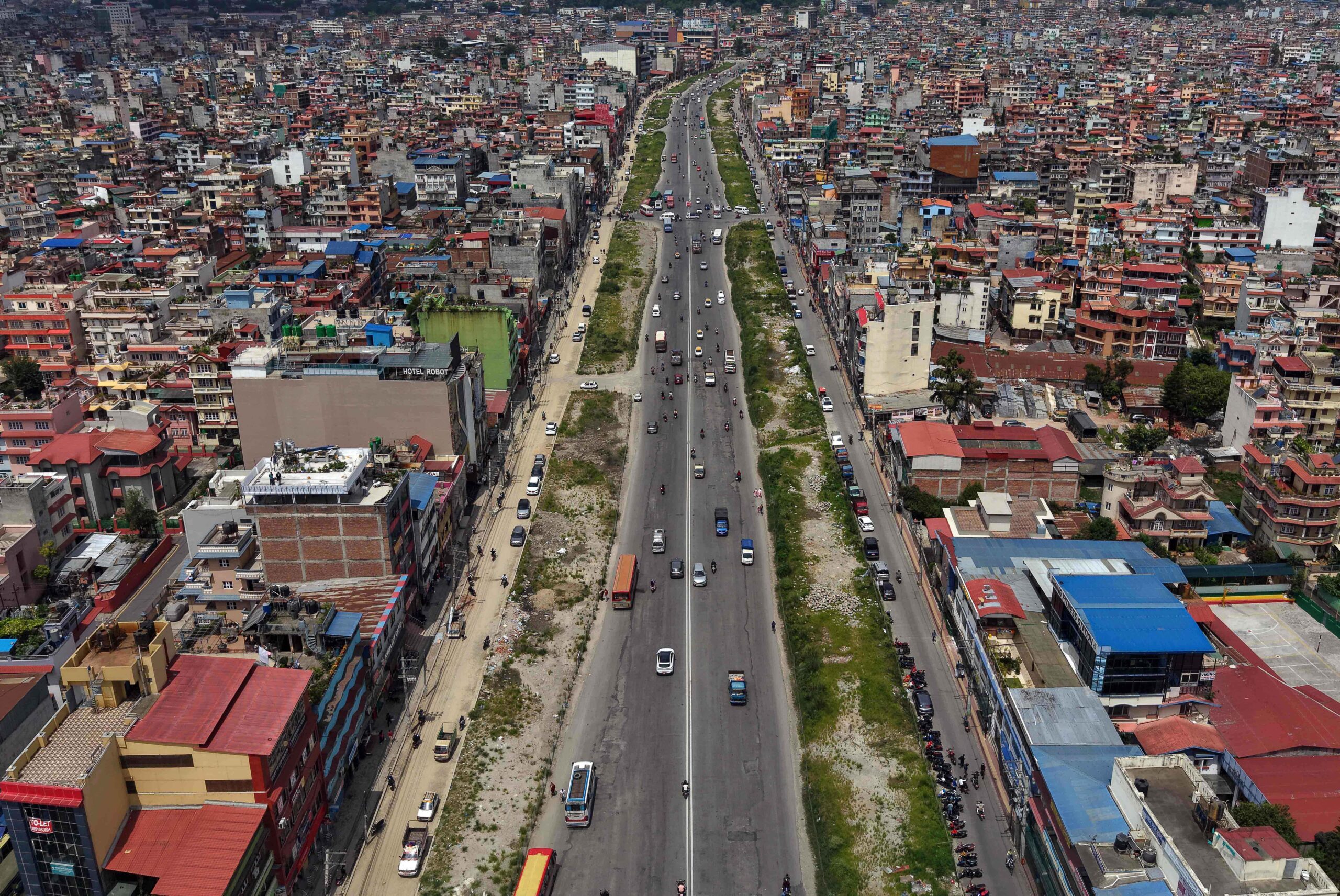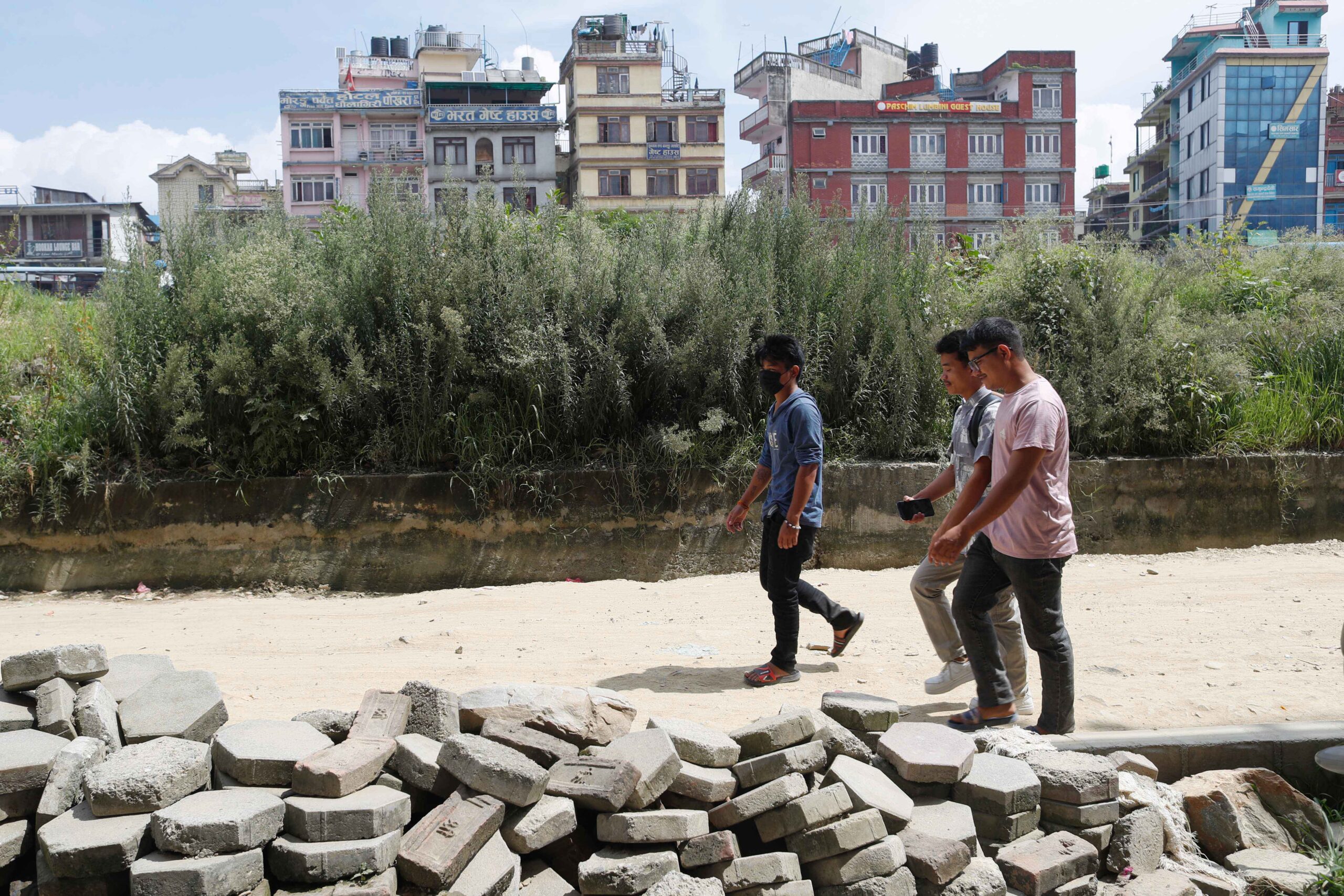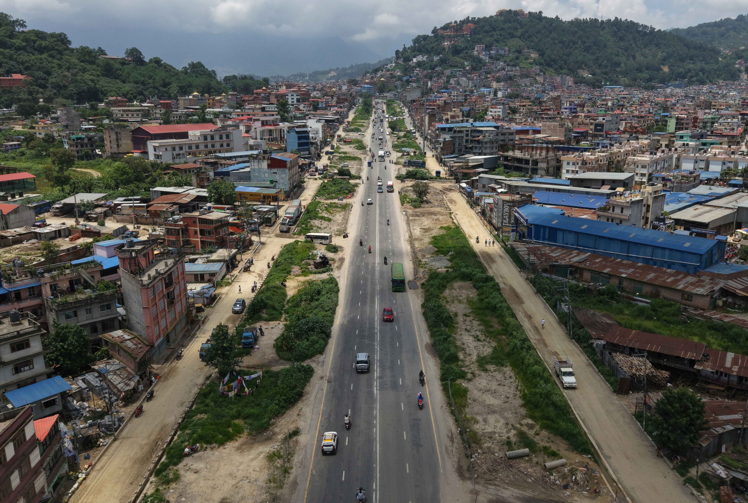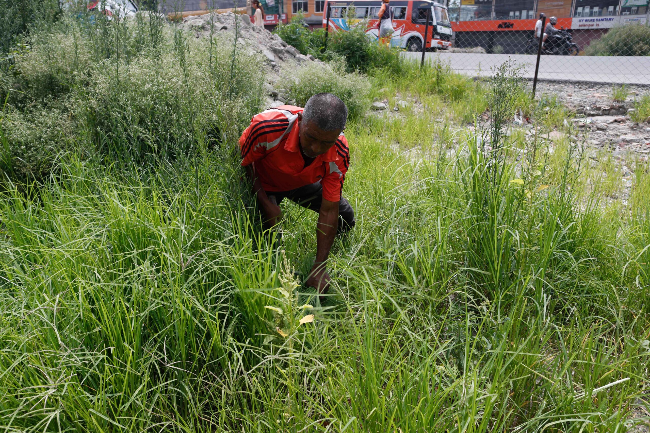 At present, the road from Kalanki to Narayan Gopal Chowk is covered with grass and shrubs on the right side of the road.