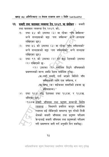 Sub-section 3 of Section 54 of the Transport Management Act 2049 has been kept for 10 years instead of five years. The amended Act has come into force with the publication of the Gazette.