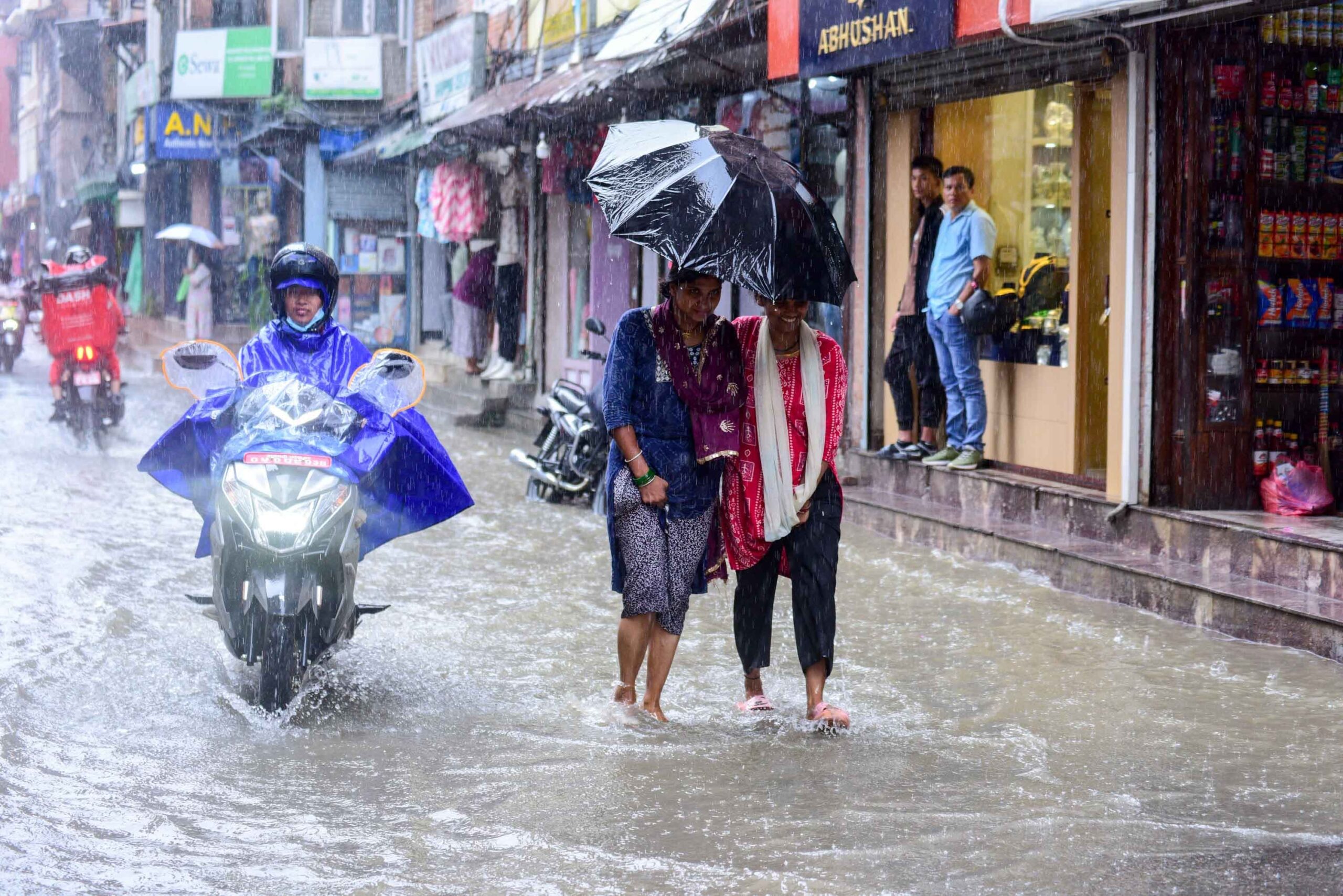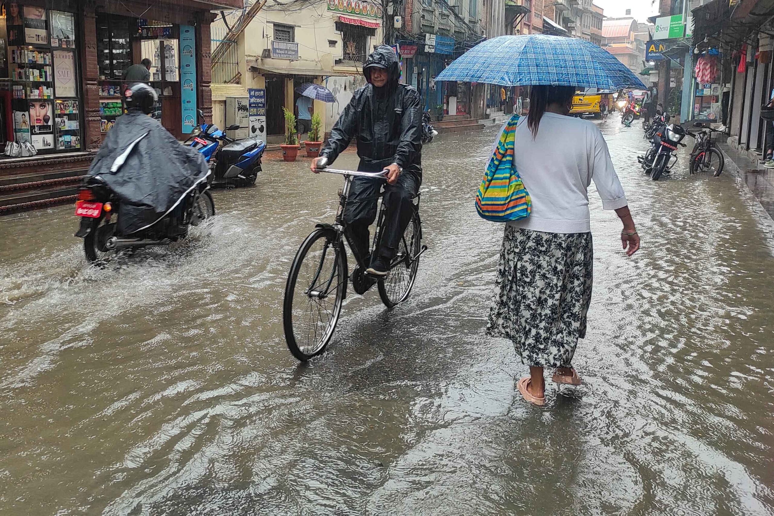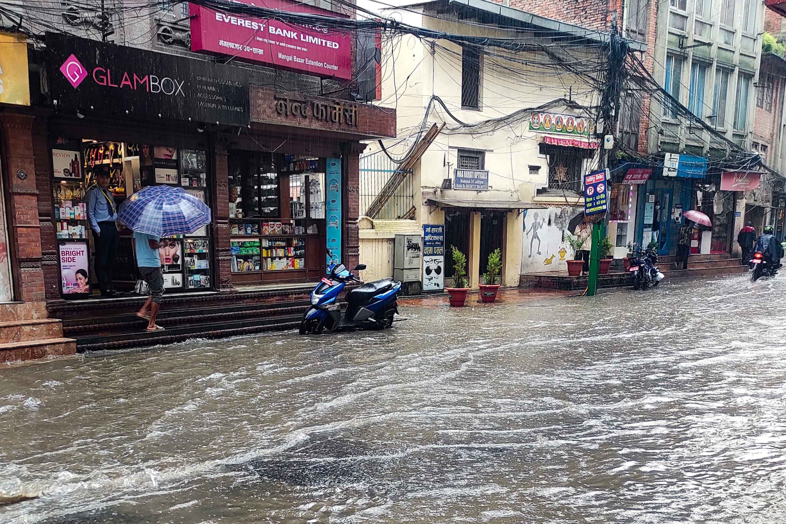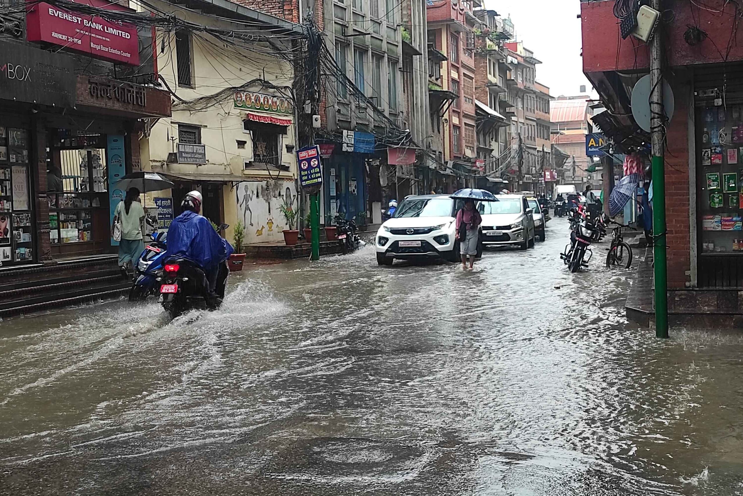 Kathmandu. The road leading to Patan Durbar Square in Mahapal area of Patan has been inundated due to rain.