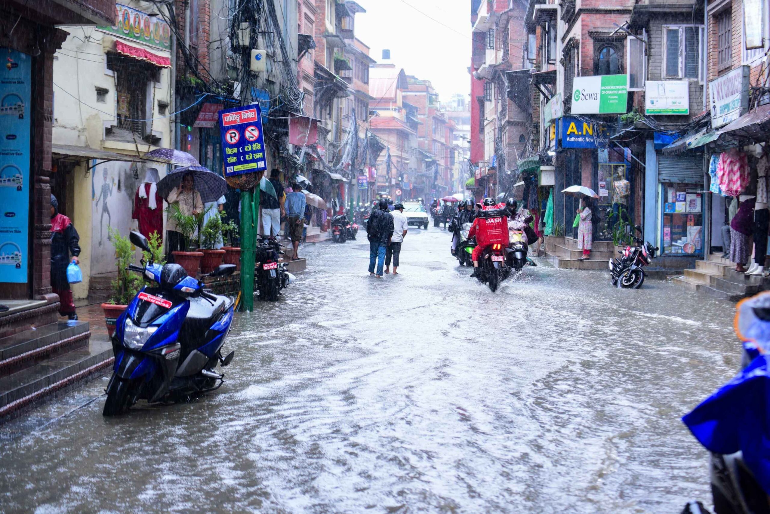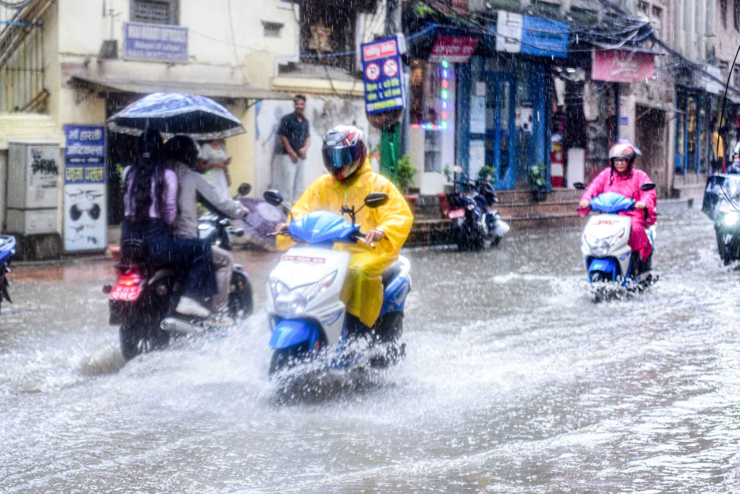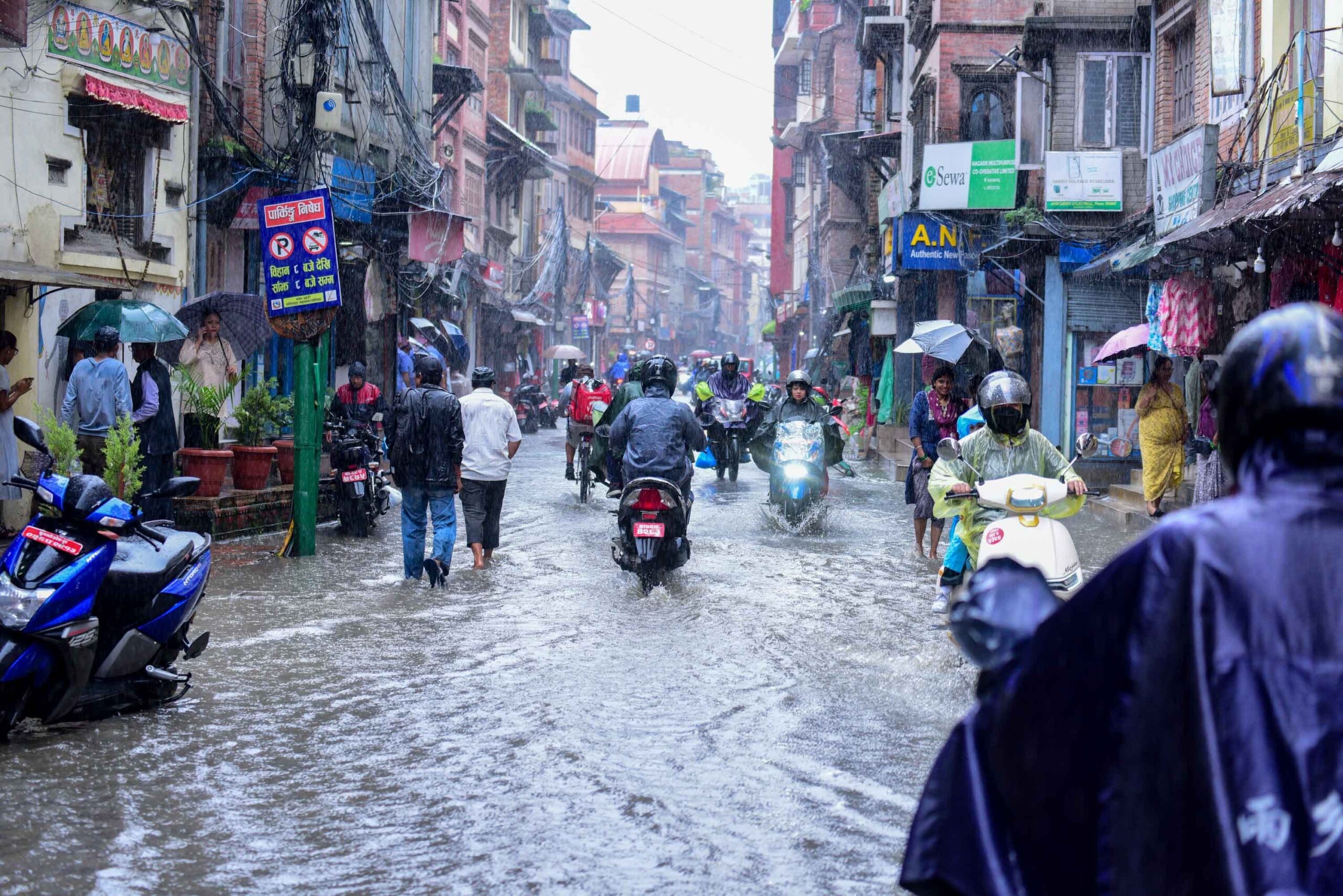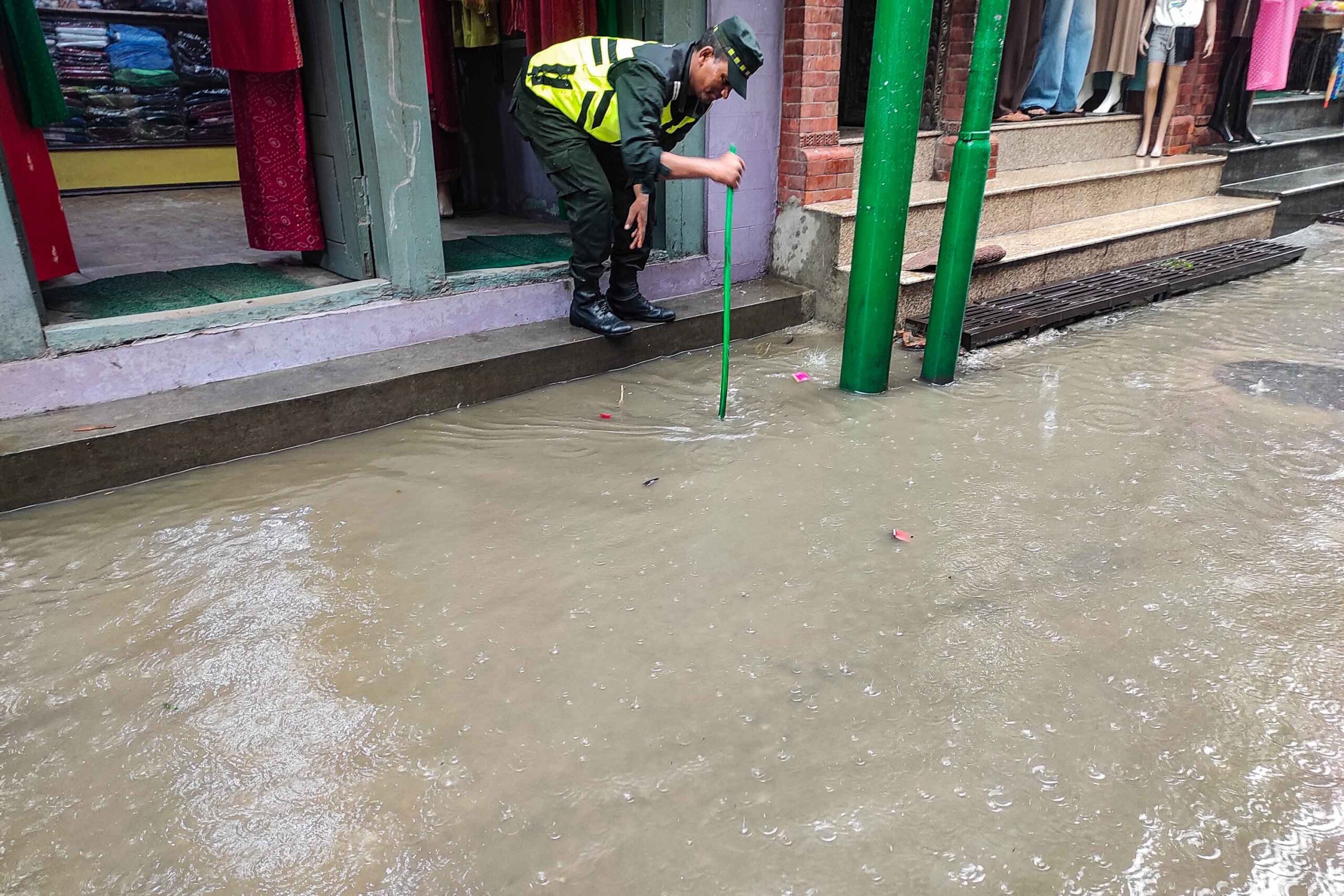 Kathmandu. The road leading to Patan Durbar Square in Mahapal area of Patan has been inundated due to rain.