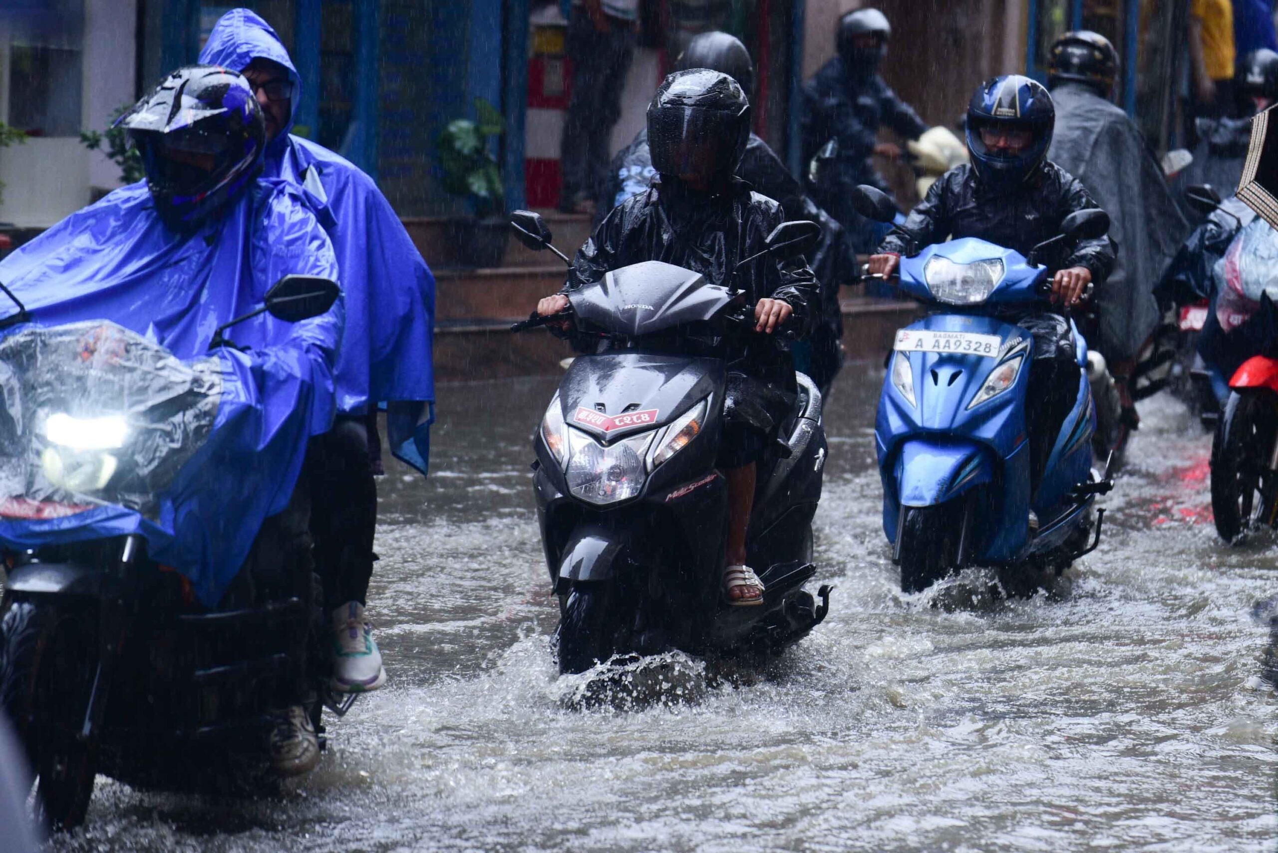 Pedestrians are struggling to walk, while vehicles are struggling to move through the water.