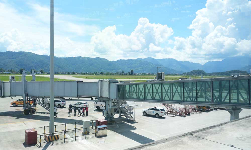 At Pokhara Airport, Adhikari said that apart from the agreement for the construction of the airport, two boarding bridges have been added to the airport and the runway and taxiway have been constructed using 34 cm thick concrete keeping in mind the geography of Pokhara. Pokhara Airport, which has been upgraded to international standard due to the quality and geographical location of the airport, is currently limited to domestic flights.