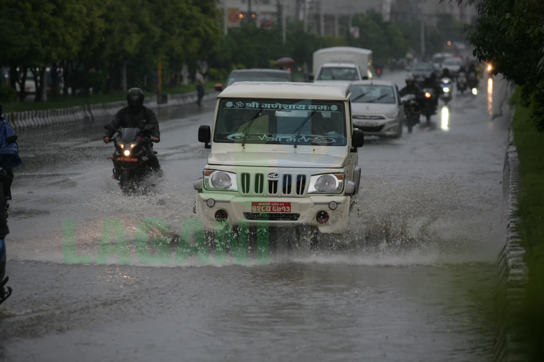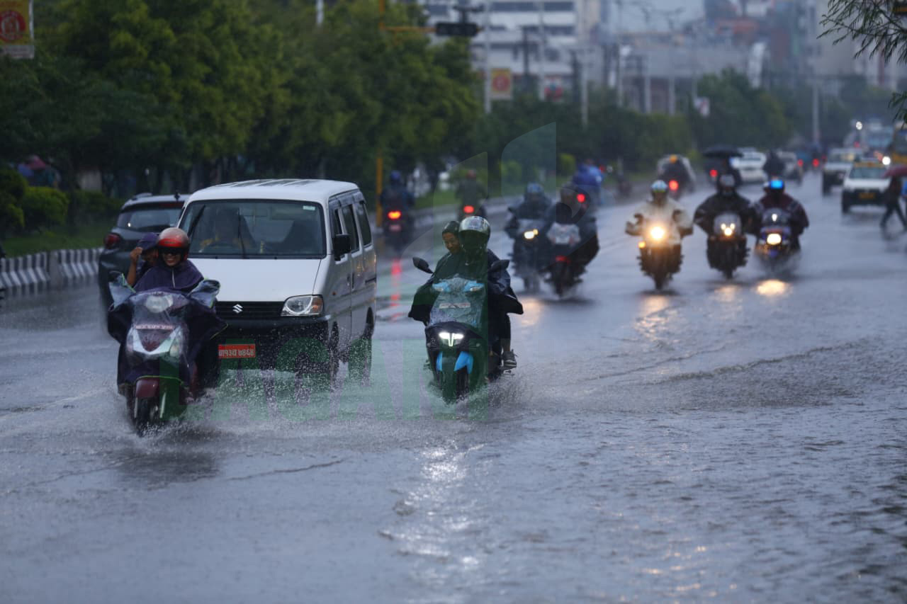 Kathmandu. Heavy rains in Kathmandu have inundated the roads. The Babarmahal area has been inundated due to heavy rains since 3 pm.
