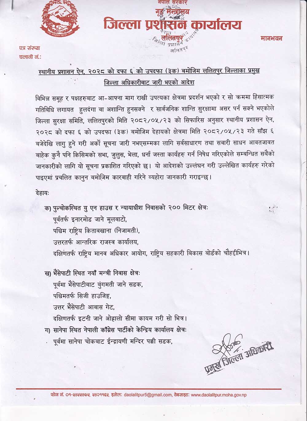 Kathmandu. The District Administration Office, Lalitpur has imposed curfew in the VIP area.