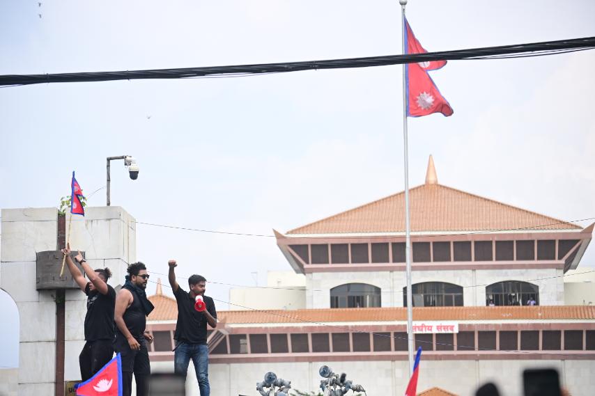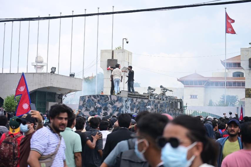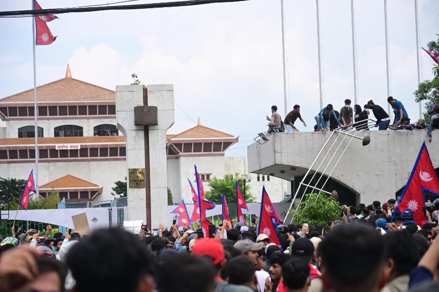 Kathmandu. Fire broke out near the gate of the Parliament Building in New Baneshwor. According to the police, the mob set fire to the Zenji generation during the movement.                                                    Photo: Nepal Photo Library