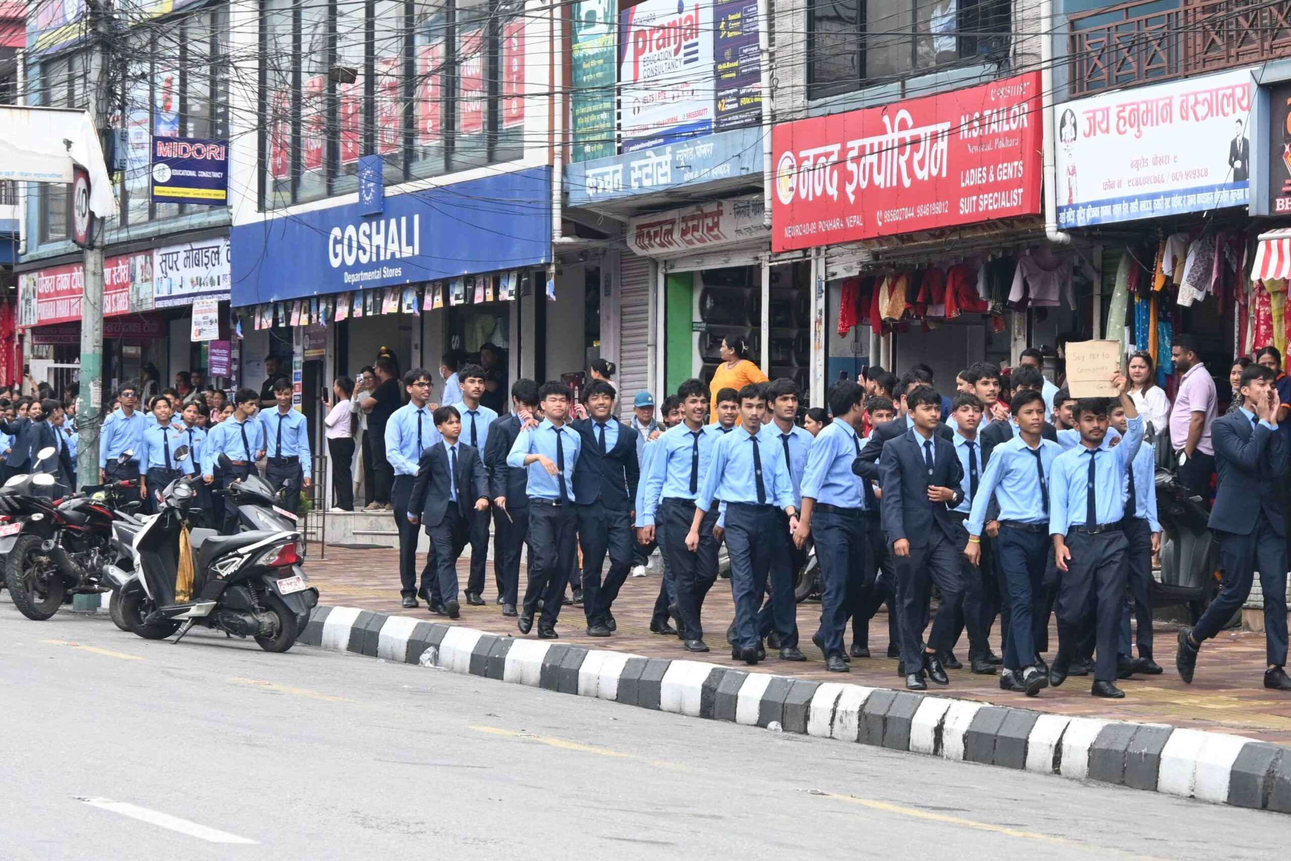 Kathmandu. Students in school uniform participate in Zen-G protest in Pokhara. Zen-G generation has also protested against corruption in Pokhara. Zen-Ji has gathered at Pokhara Auditorium and left for Chipledhunga.