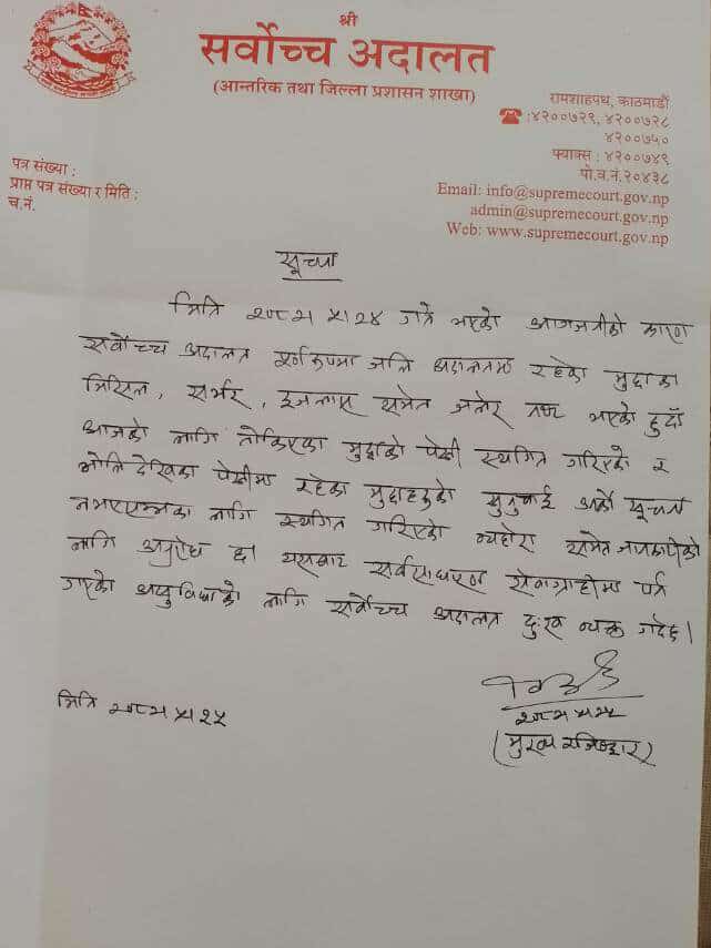 Kathmandu. The Supreme Court has said that the hearing will not take place immediately.