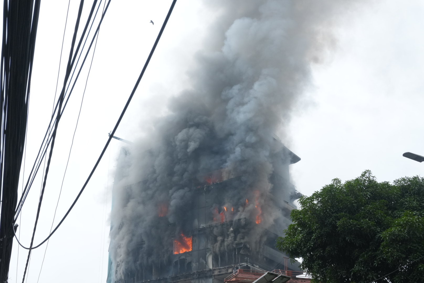 The fire has not yet been extinguished after Genji set it on fire on Tuesday. The Hilton Hotel is still burning.