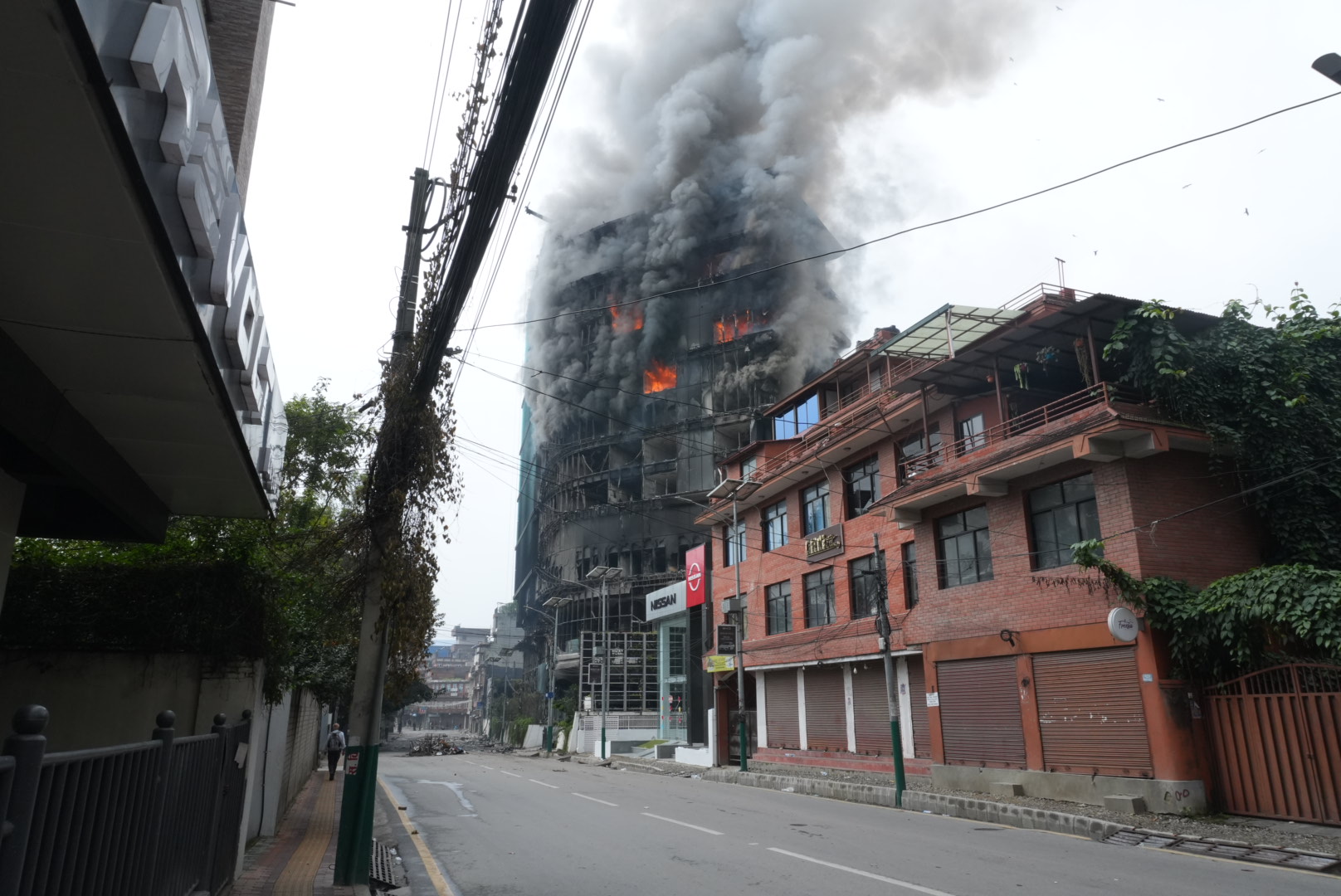 Kathmandu. The fire at the Hilton Hotel set by Genji protesters on Tuesday has not yet been extinguished.