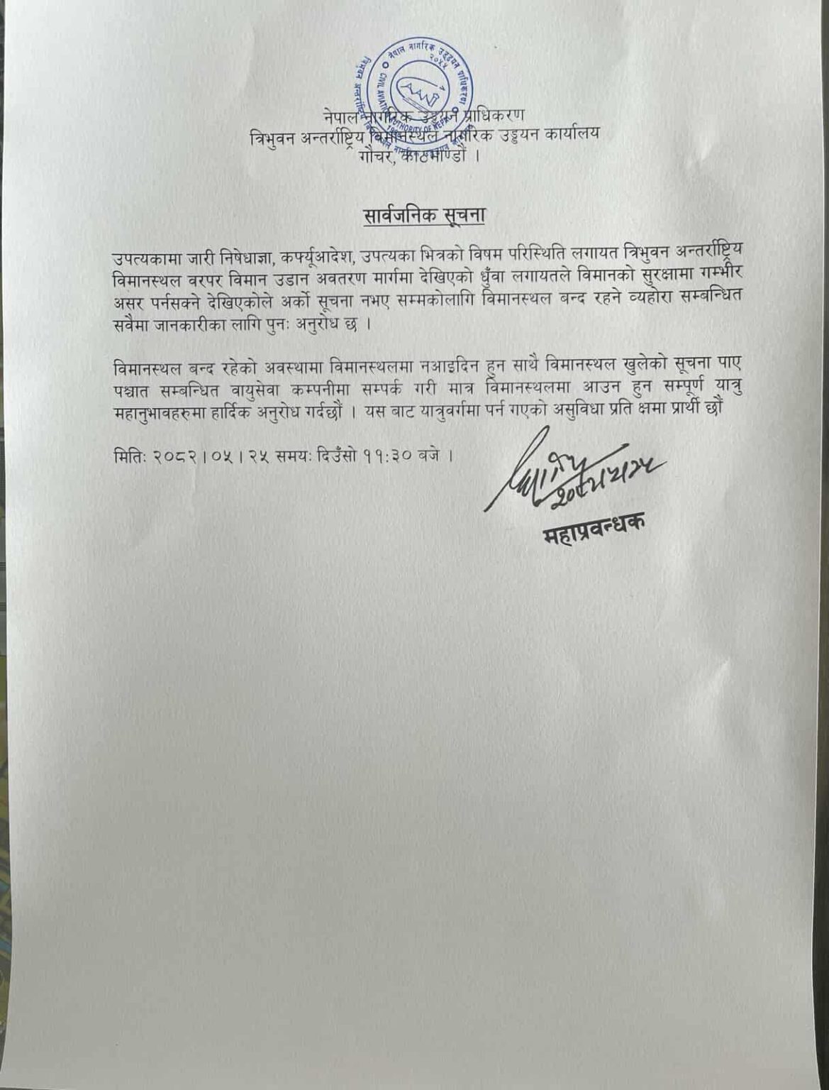 Tribhuvan International Airport closed for indefinite period