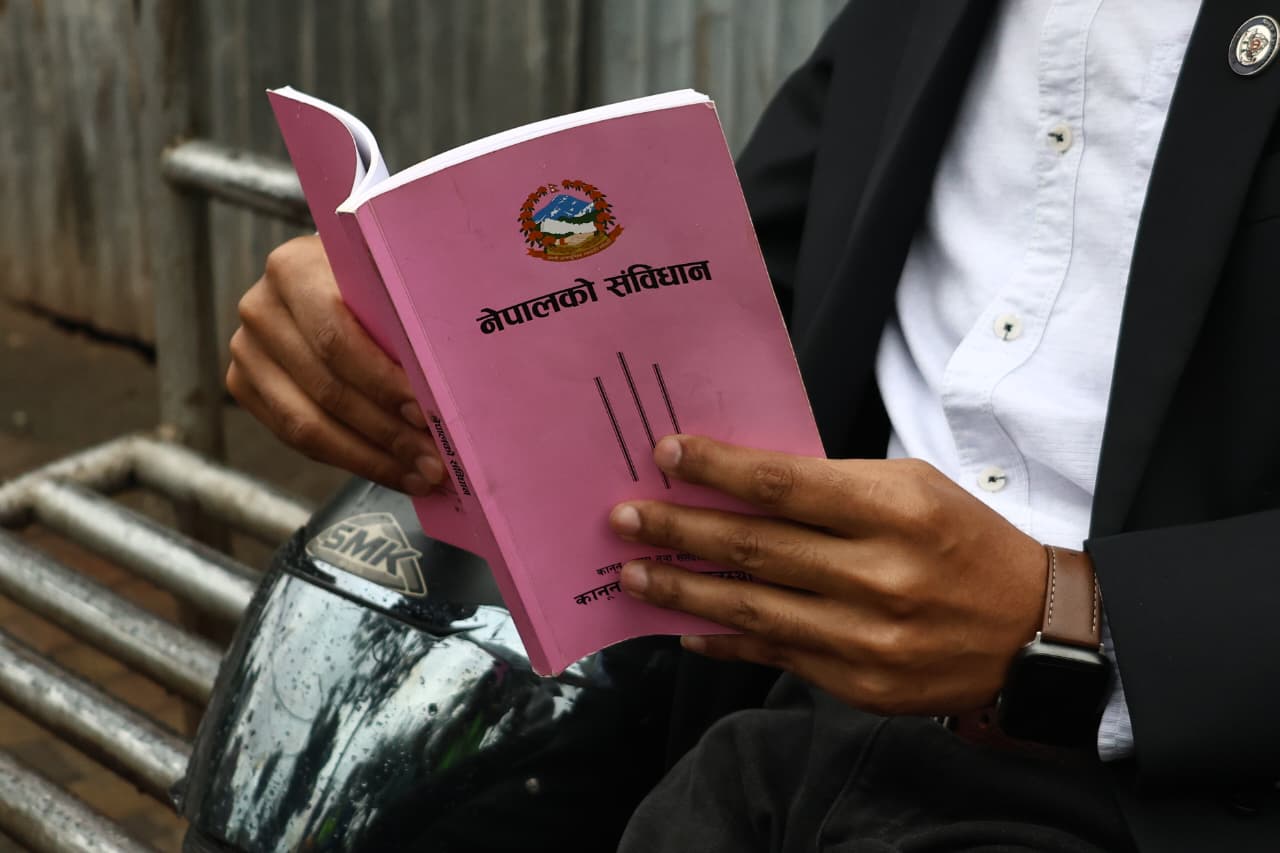 Kathmandu. A young man has reached Maitighar to save the constitution.