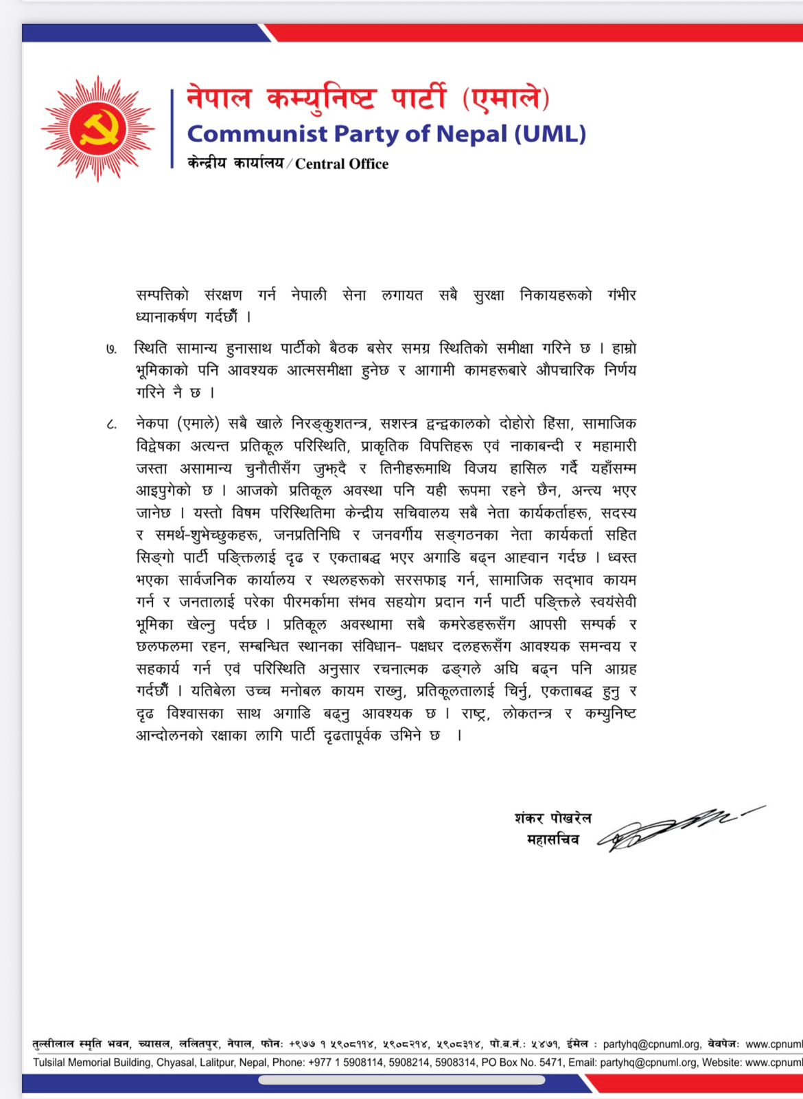 Issuing a press release today, CPN-UML General Secretary Shankar Pokharel drew the attention of the President to initiate meaningful dialogue and take leadership initiatives as per the spirit of the constitution.