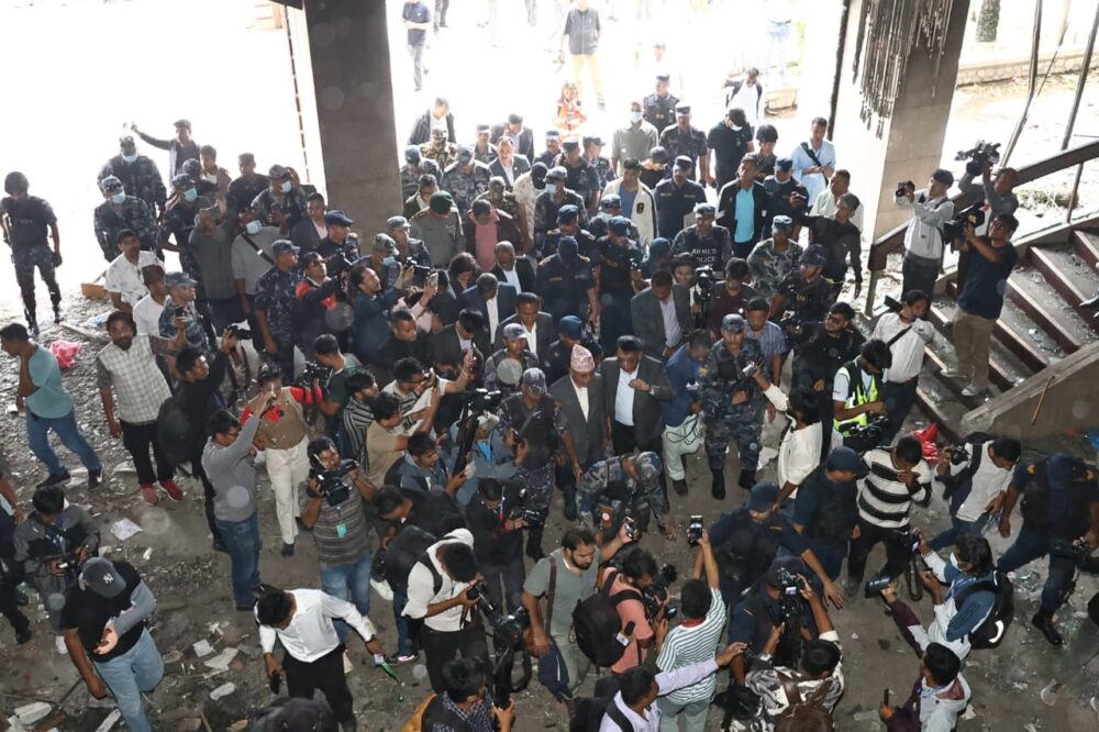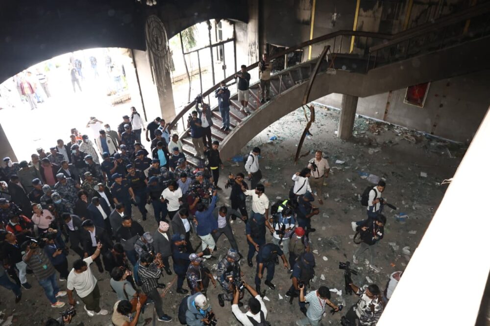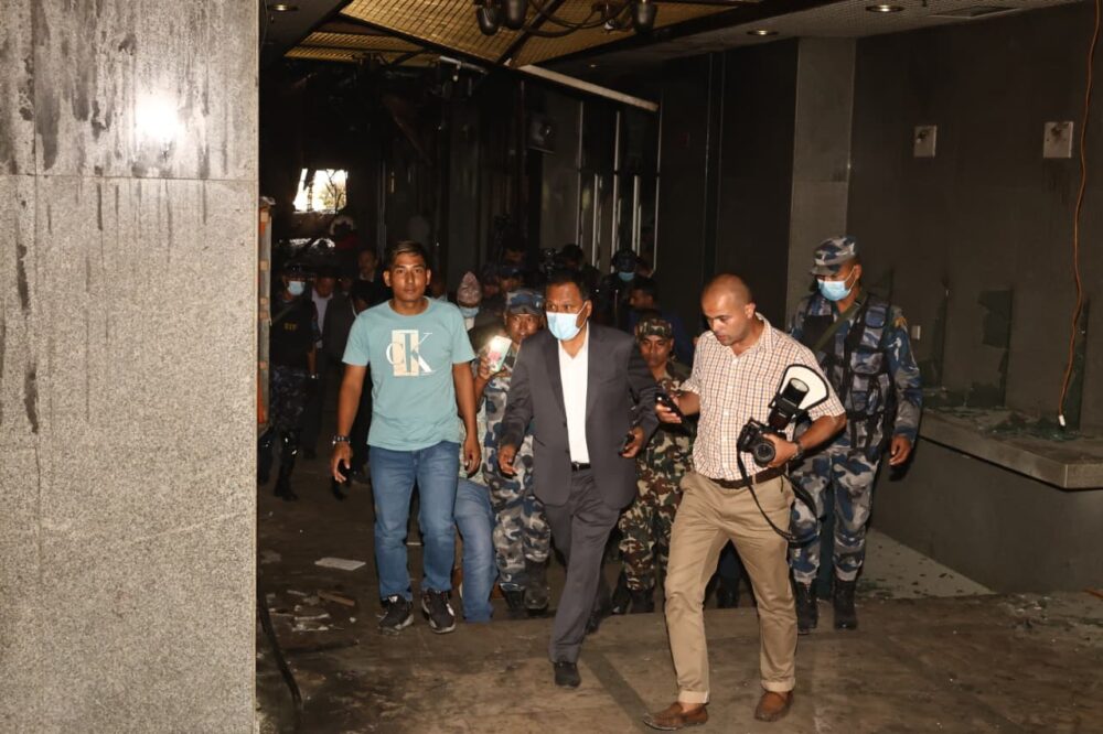 Kathmandu. The ministers of finance, home and physical infrastructure have inspected the federal parliament building that was set ablaze during the Jenji agitation.