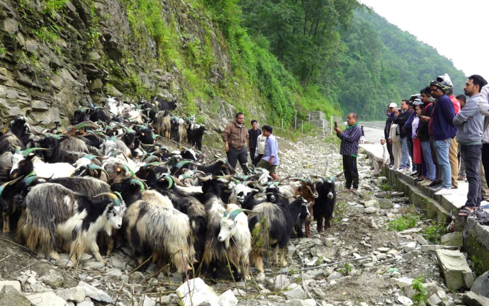 Kathmandu. Mountain goats have started entering Pokhara with the arrival of Dashain festival. Traders from mountainous districts have brought mountain goats to Pokhara as per the high demand during the festivals.