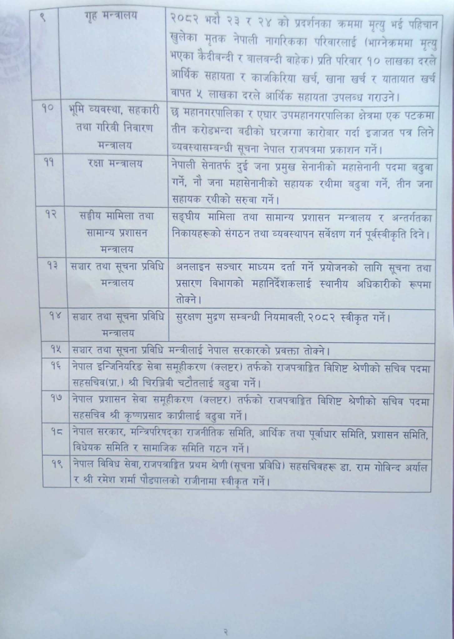 According to Minister Kharel, the meeting decided to transfer the Department of Revenue Investigation and the Department of Money Laundering Investigation under the Office of the Prime Minister and Council of Ministers to the Ministry of Finance and the National Investigation Department under the Ministry of Home Affairs.