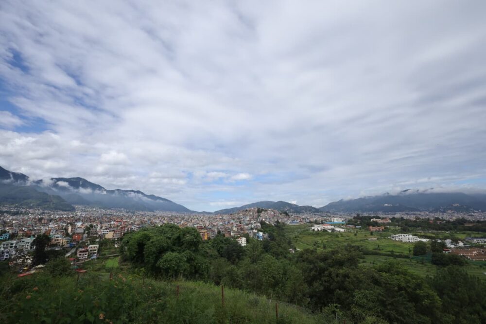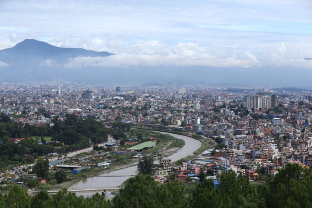 Kathmandu. The sky has opened up in the Kathmandu Valley after the rain stopped. The sun is shining in Kathmandu and the water level in the river has receded.