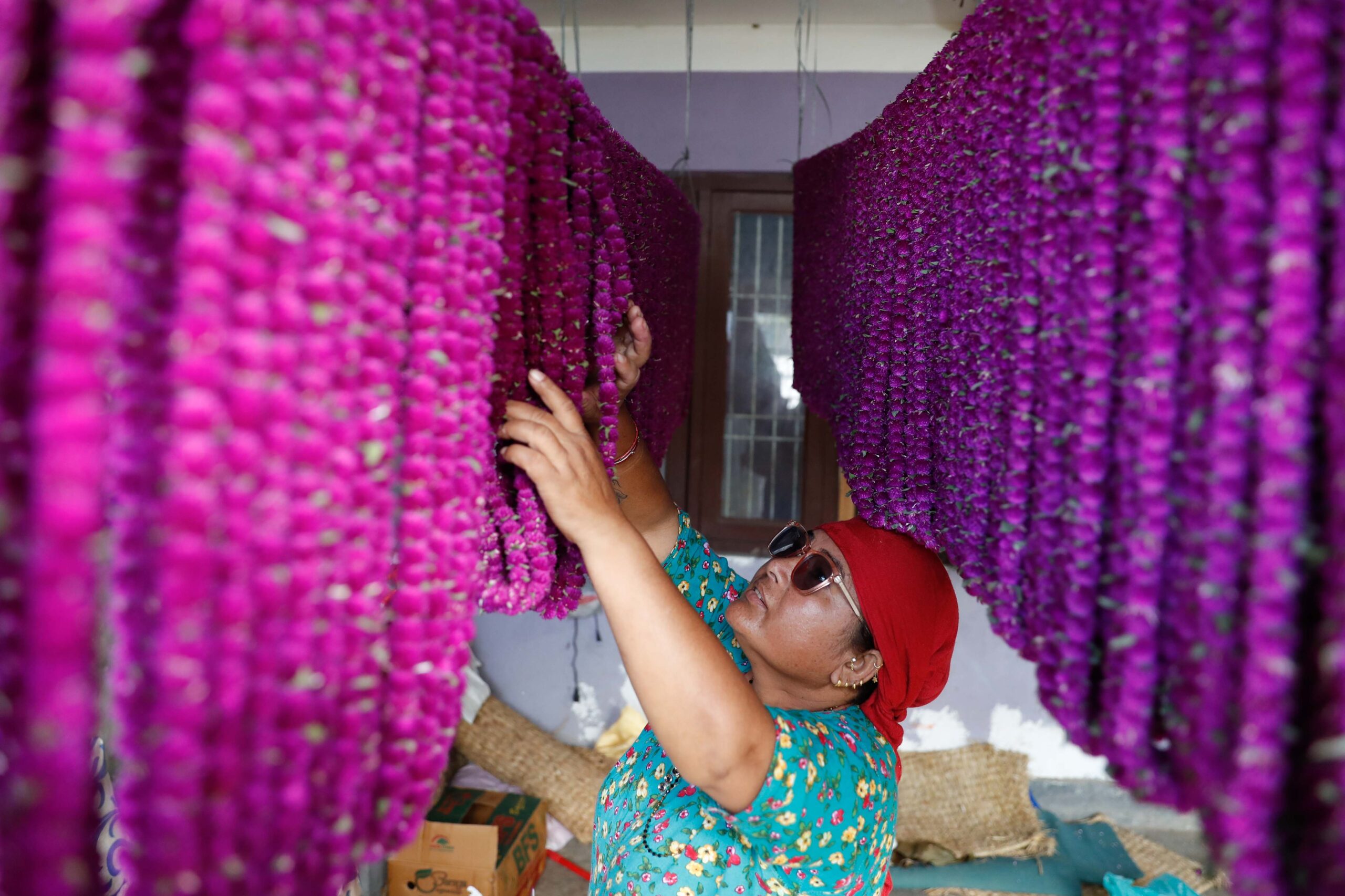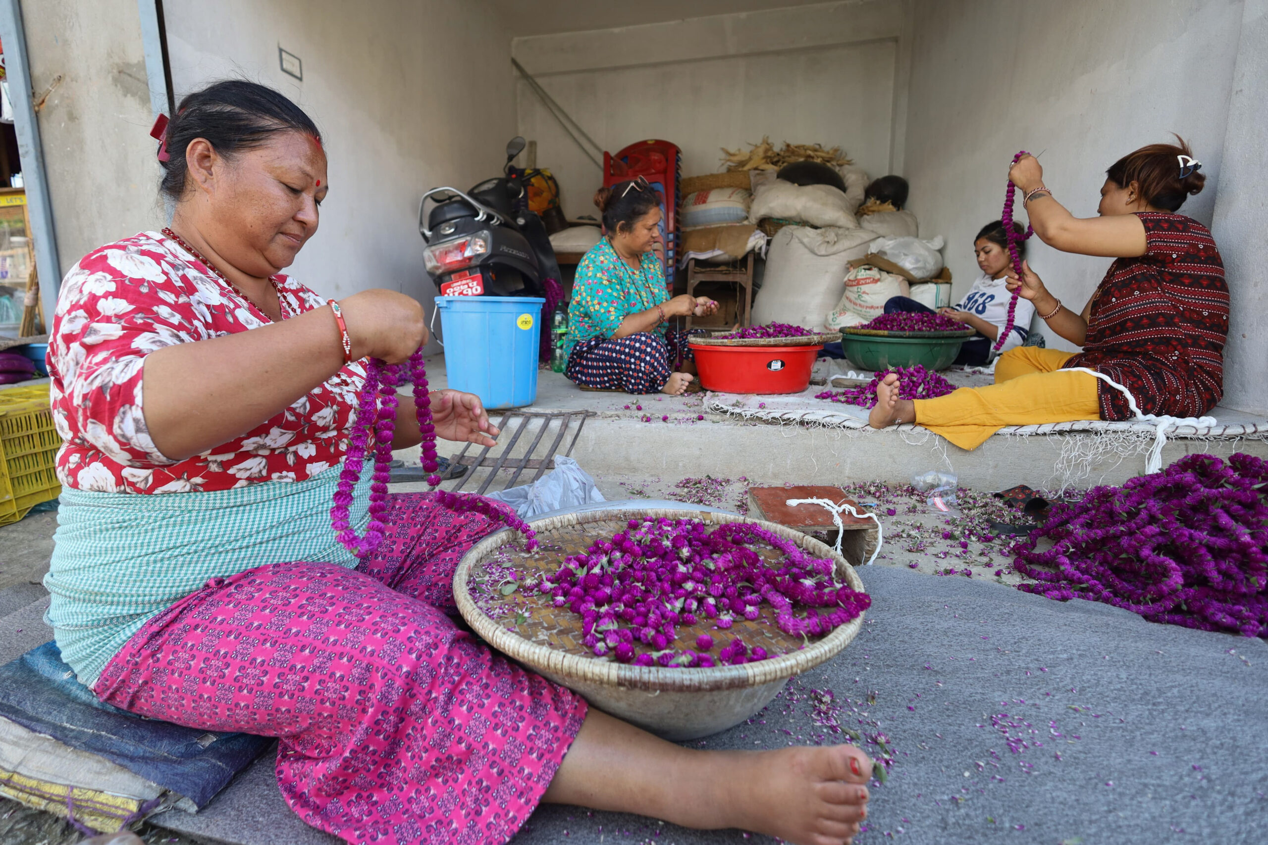 She informed that after Dashain, flowers will be planted for Tihar. She said that the price of each garland is Rs 22 to 23 and the businessmen come to buy the garlands at home.